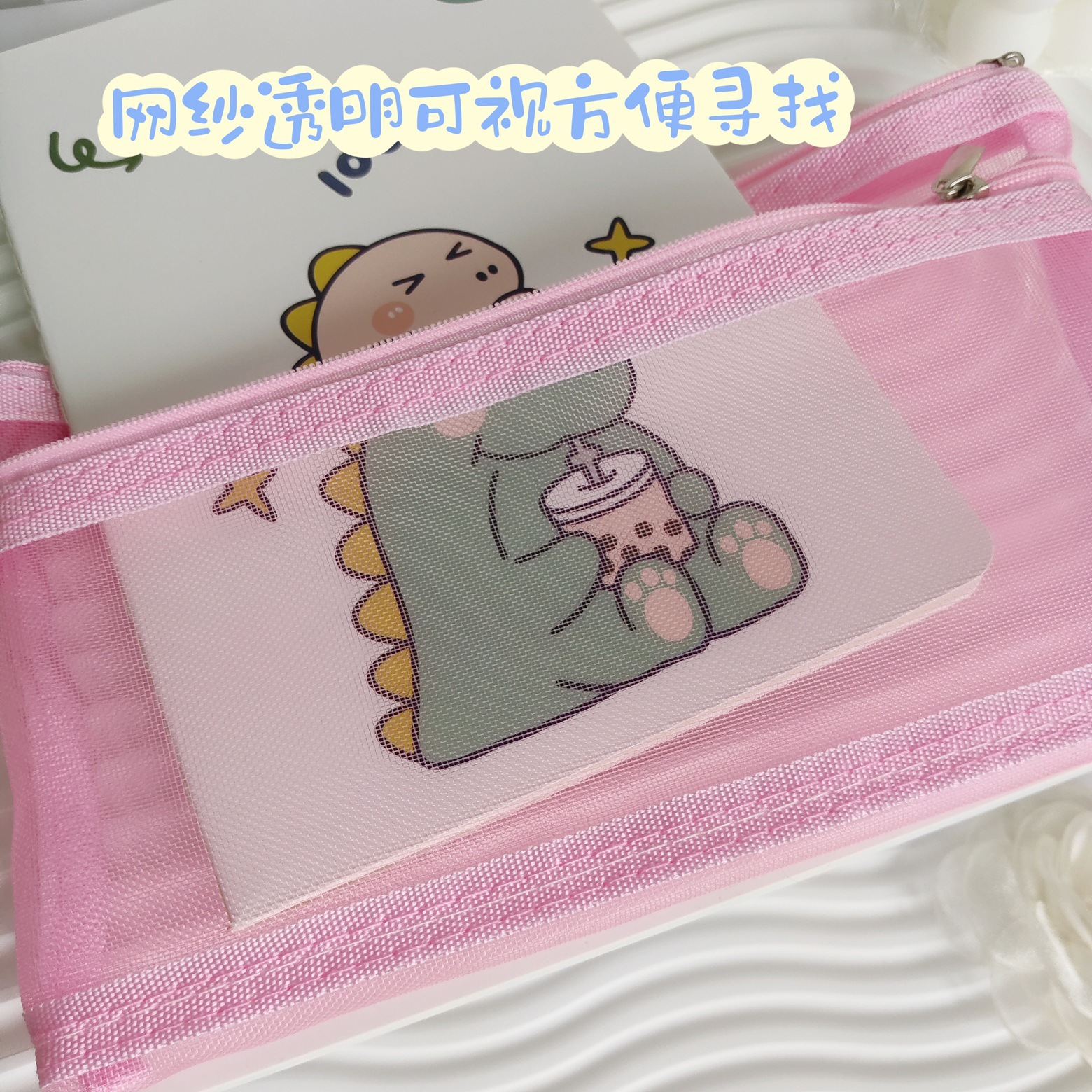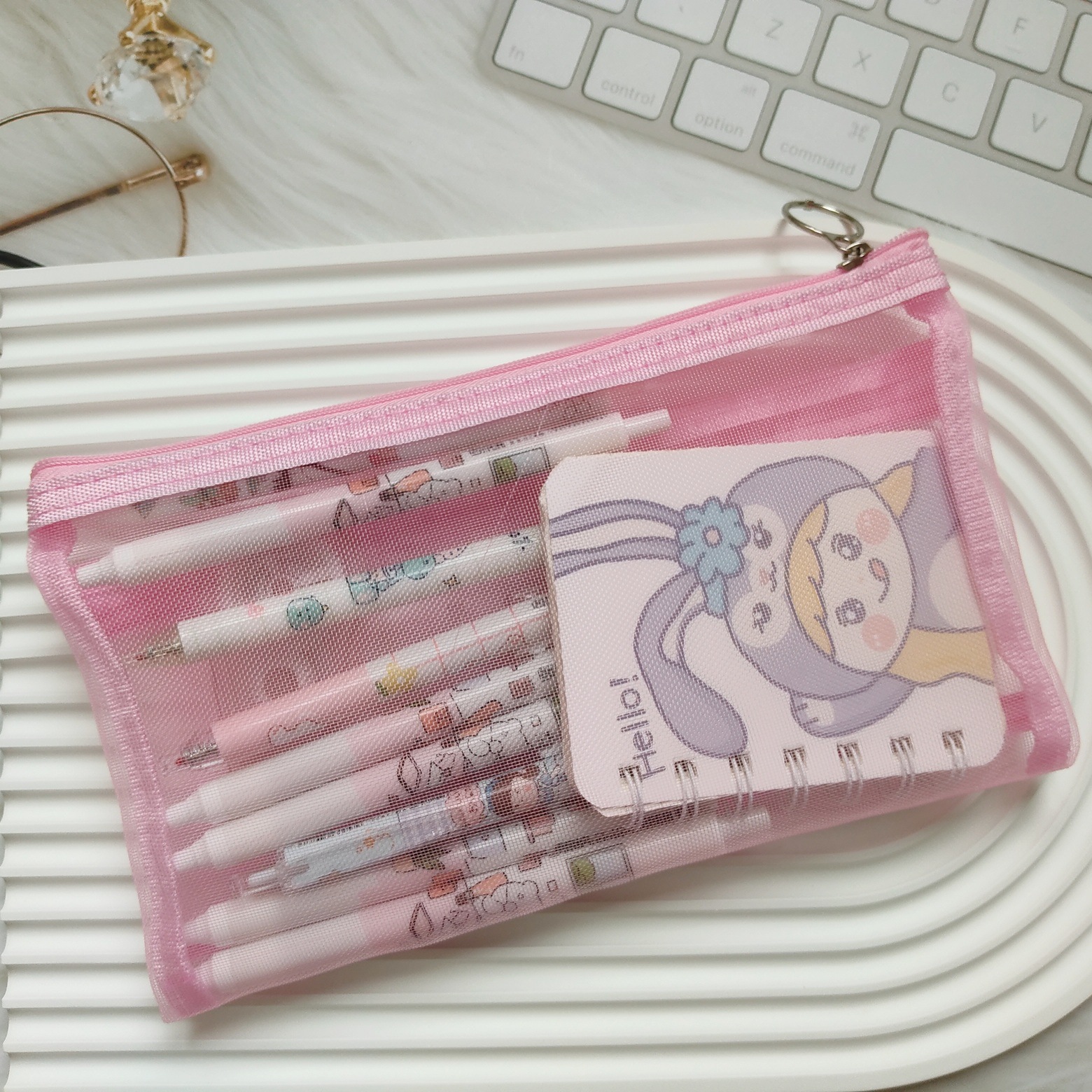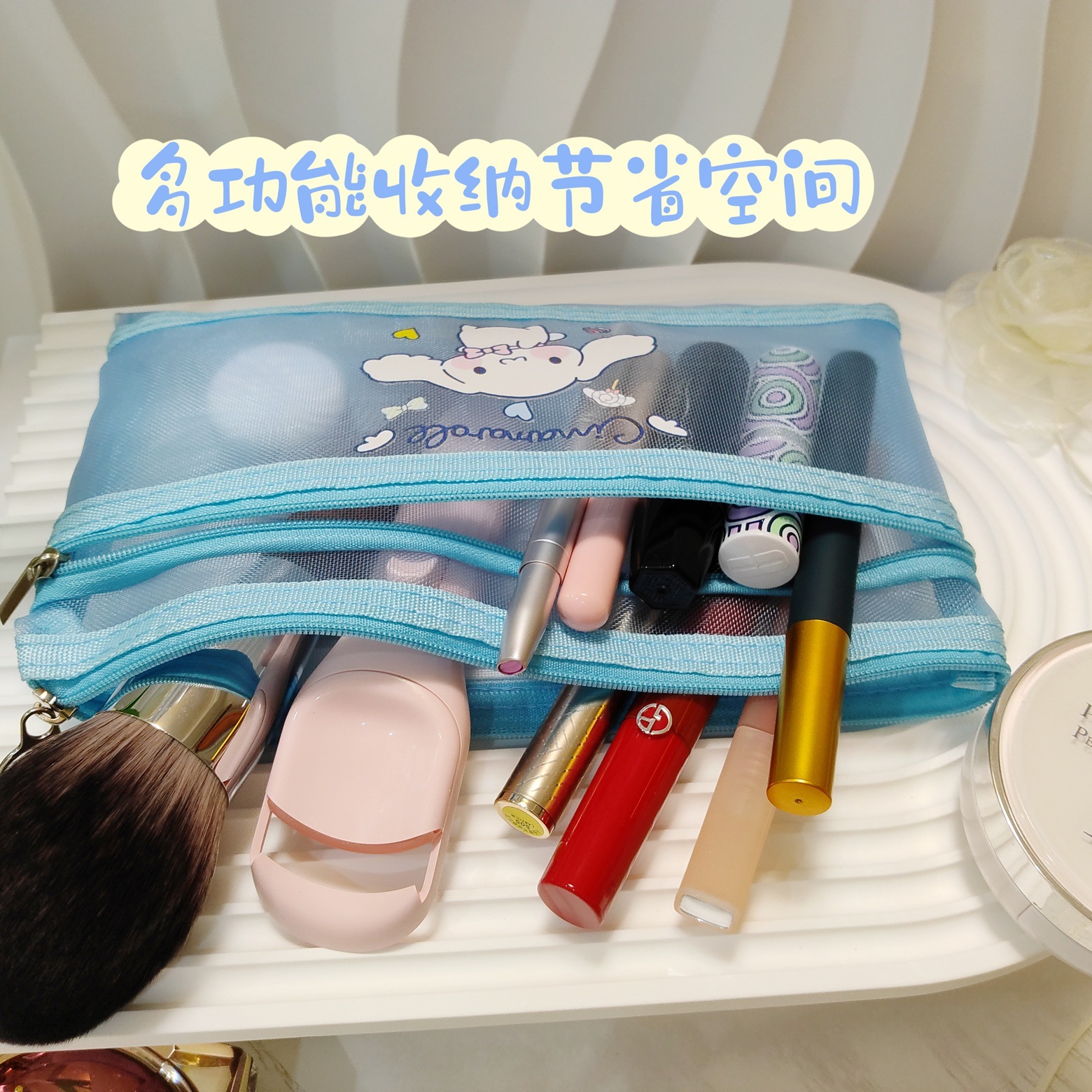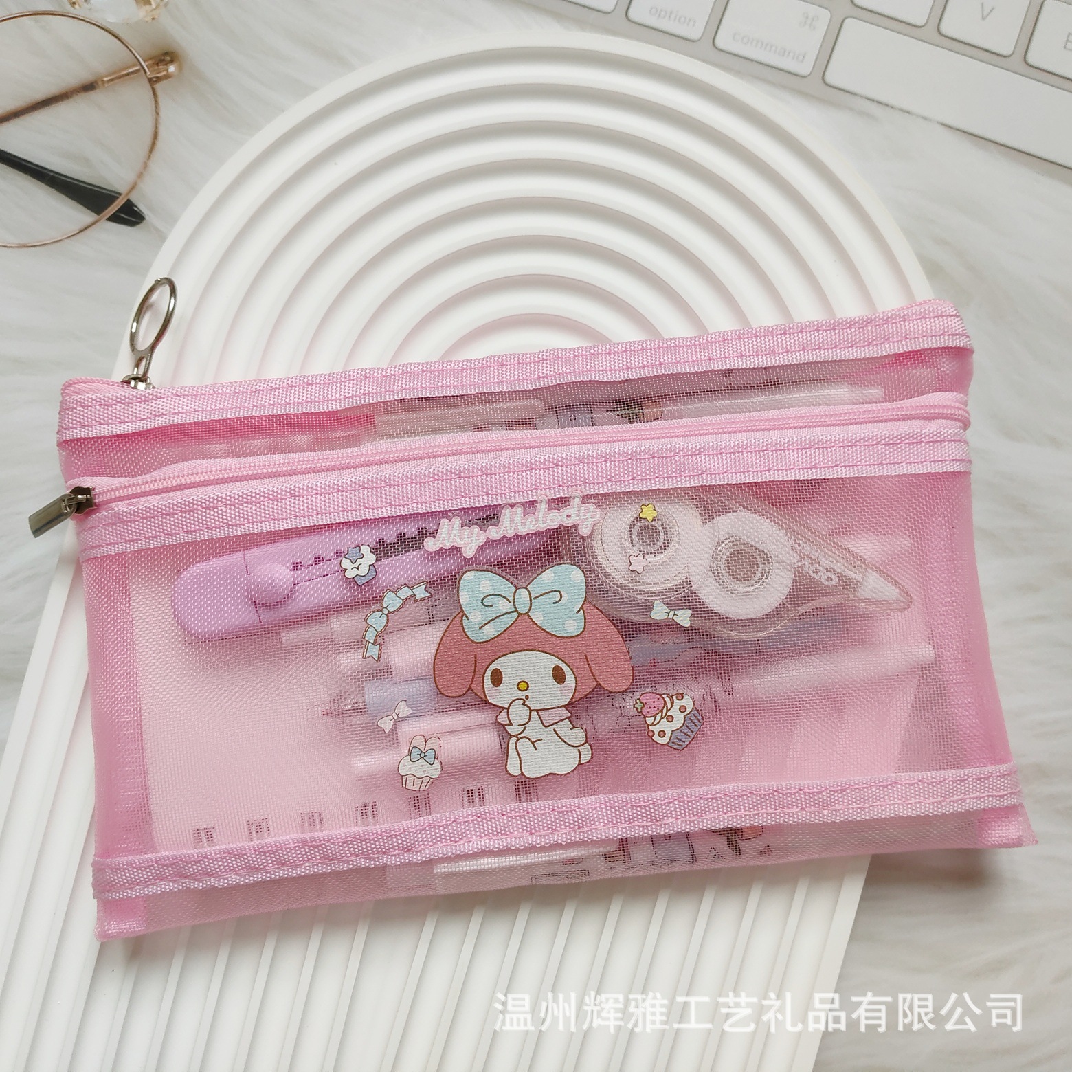 새로운 Sanlio 나일론 메쉬 연필 가방 Kulomi 투명한 격자 연필 가방 학생 시험을위한 특수 문구 가방