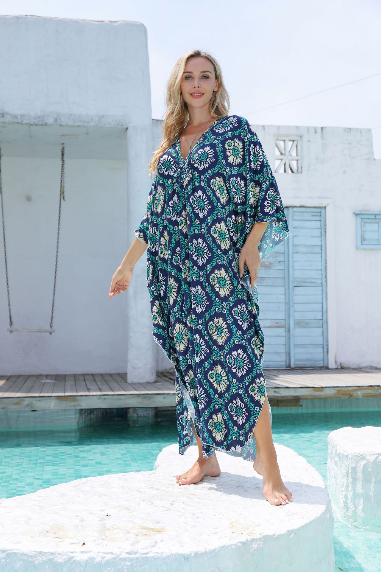 유럽과 미국 국경 대외 무역 아마존 새로운 레이온 비치 블라우스 휴가 레저 느슨한 태양 비키니 가운