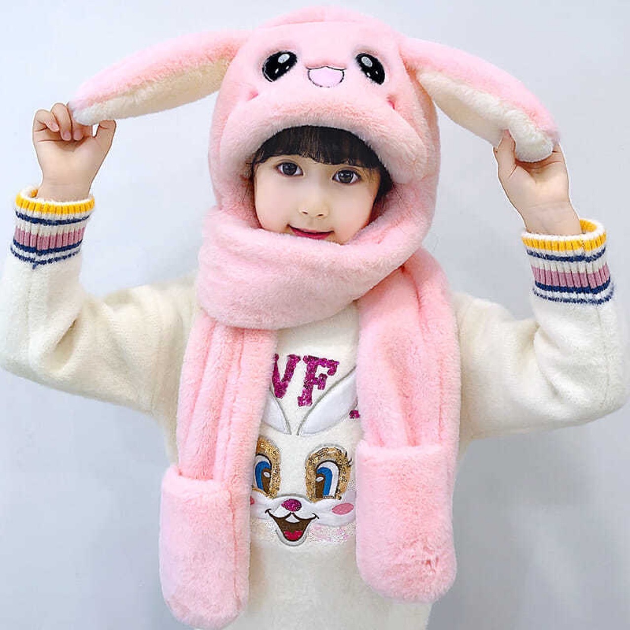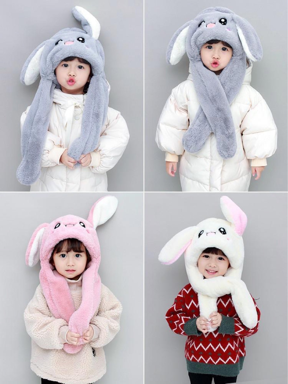 소년 모자 가을과 겨울 어린이 스카프 통합 모자 핀치 토끼 귀는 소년 아기 소년 목 소녀를 움직입니다