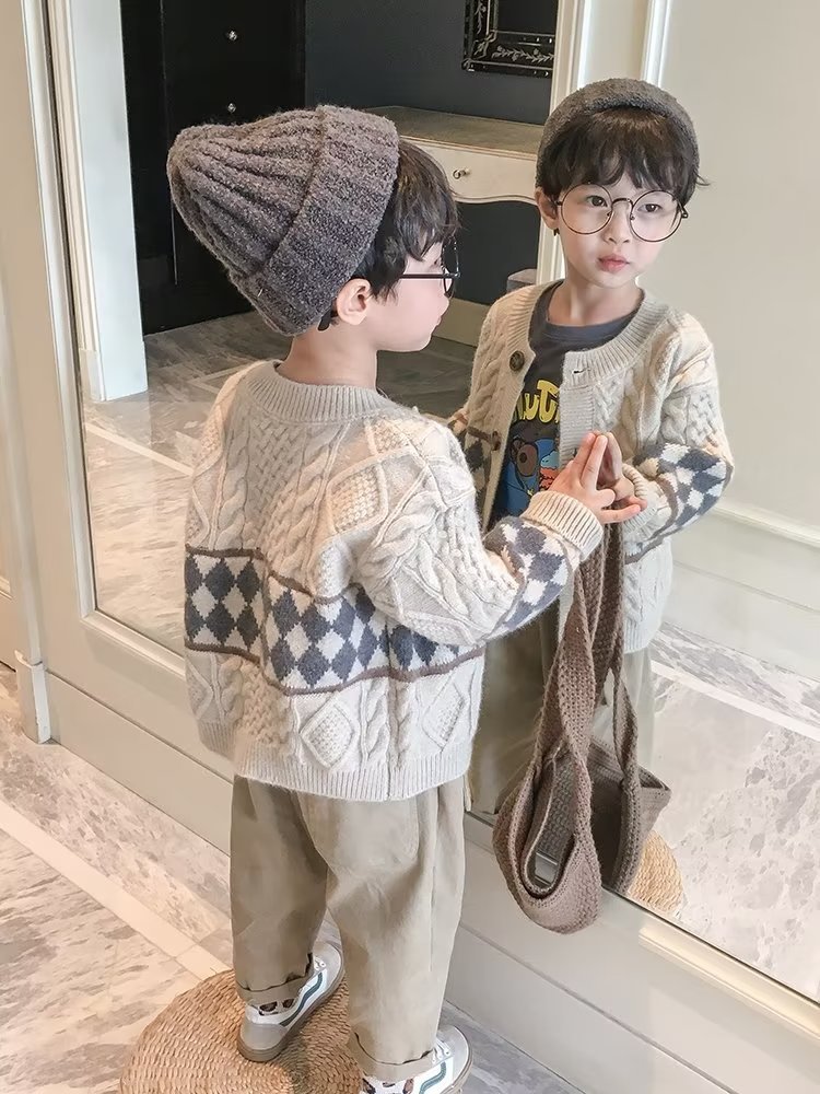 소년 캐주얼 2024 봄과 가을 스웨터 새로운 유행 봄 어린이 한국 팬 초가을 줄무늬 스웨터스토어 가기