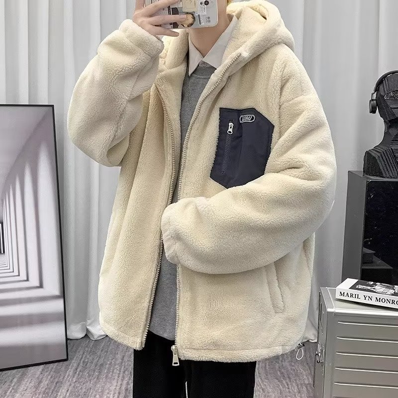 양고기 벨벳면 패딩 재킷 2024 남학생을위한 새로운 겨울면 패딩 재킷 두꺼운 따뜻한 재킷 스포츠 캐주얼 세련된 잘 생긴 코트