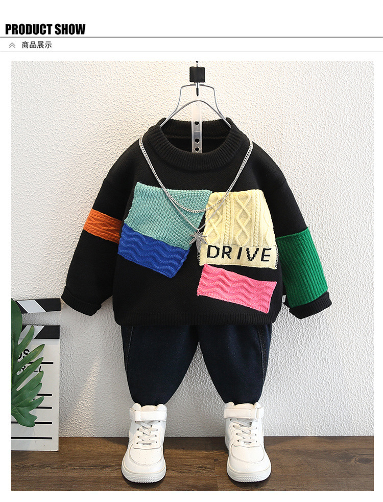 소년의 가을과 겨울 스웨터 2024 새로운 서양식 어린이 따뜻한 풀오버 탑 잘 생긴 니트베이스 셔츠 트렌디스토어 가기