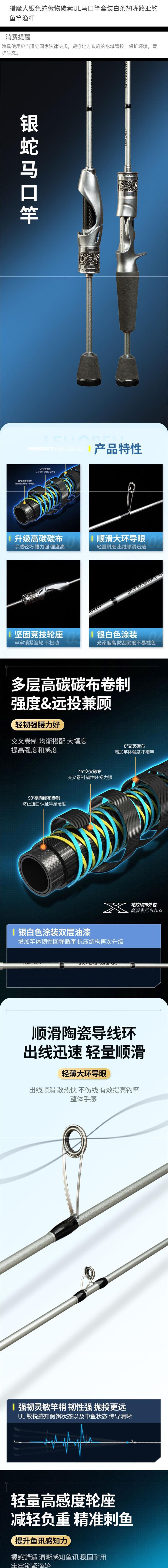 악마 사냥꾼 실버 뱀 Vignettle 탄소 UL 말 입 세트 흰색 스트립 낚싯대 낚싯대 마이크로 루야로드