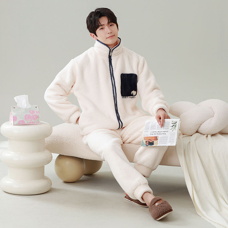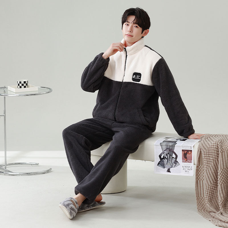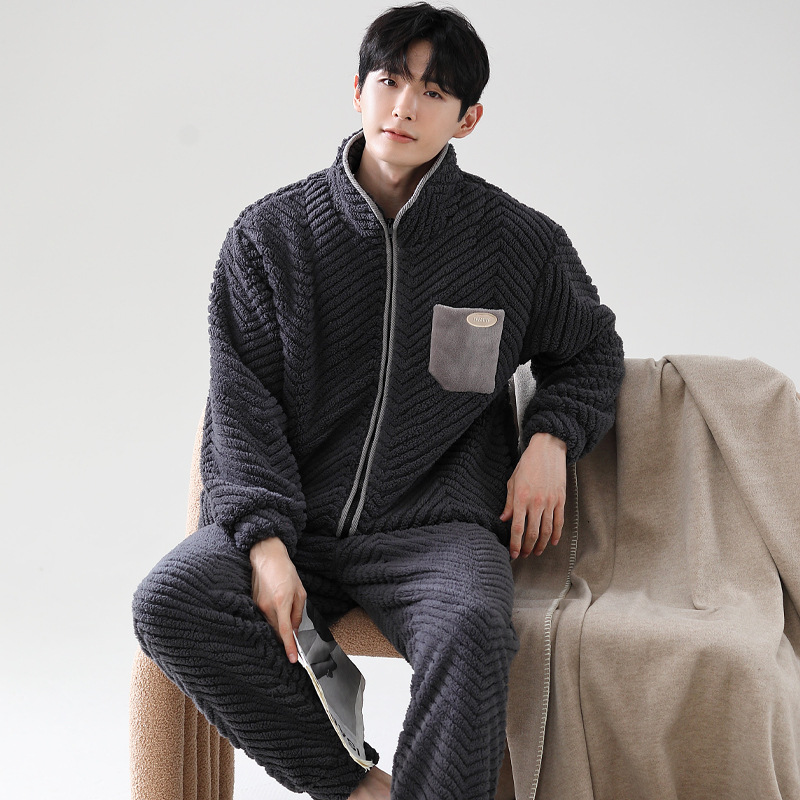 잠옷 남자 겨울 산호 양털 기모 두꺼운 따뜻한 남자 가을과 겨울 플란넬 남자 플러스 사이즈 겨울 홈 옷