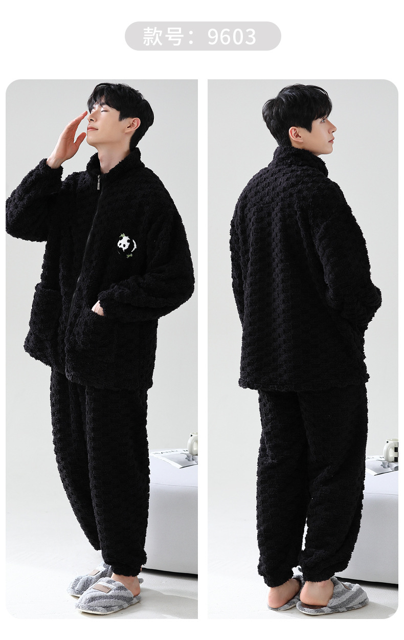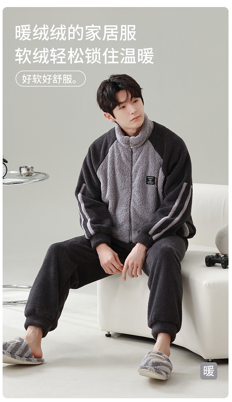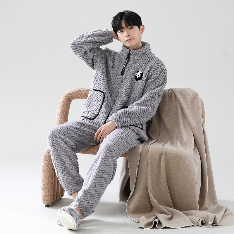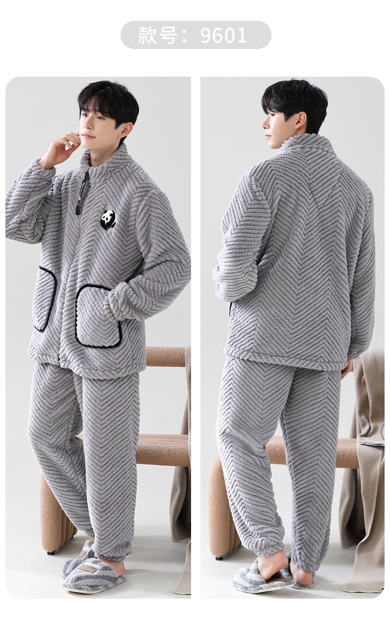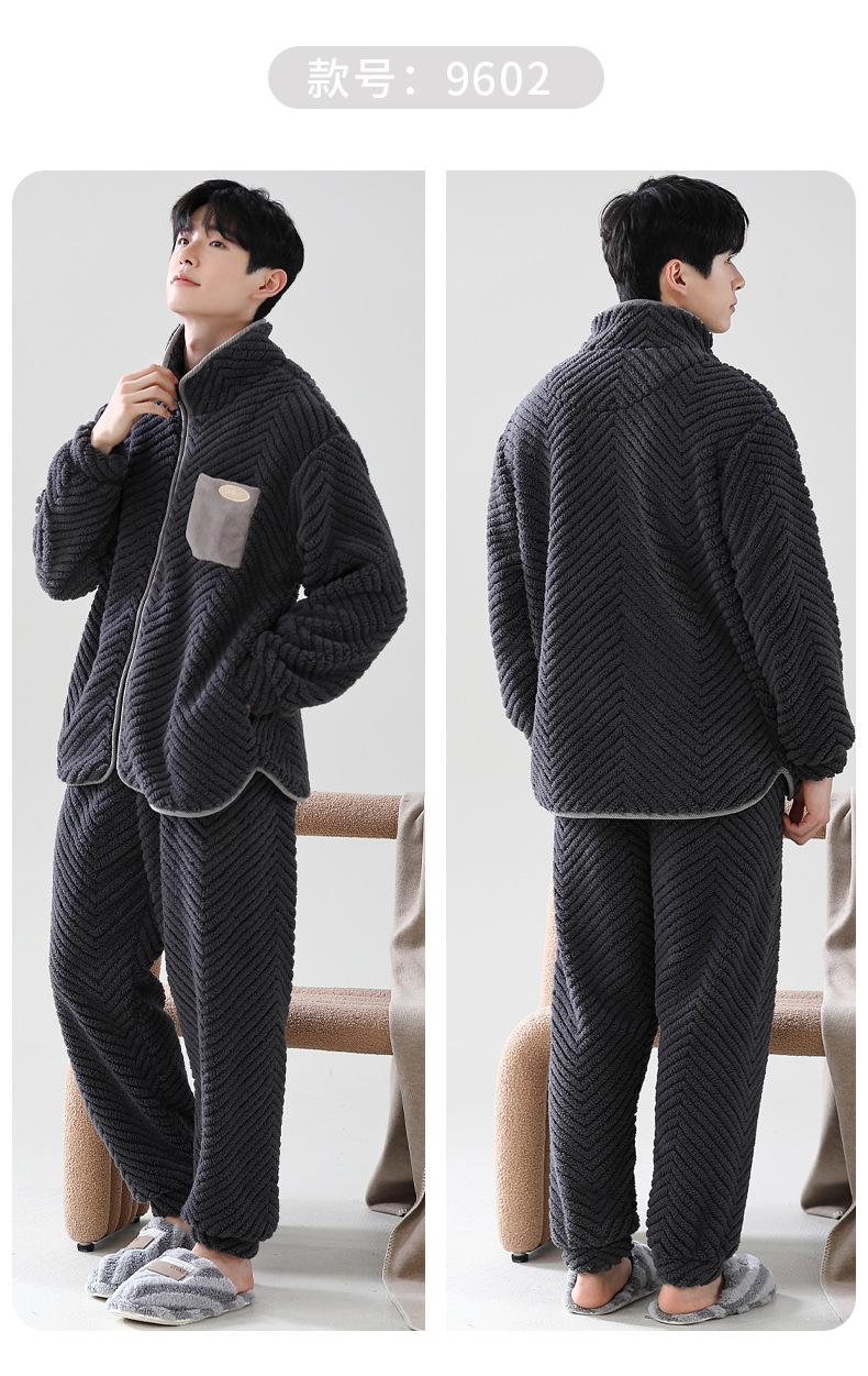 잠옷 남자 겨울 산호 양털 기모 두꺼운 따뜻한 남자 가을과 겨울 플란넬 남자 플러스 사이즈 겨울 홈 옷스토어 가기