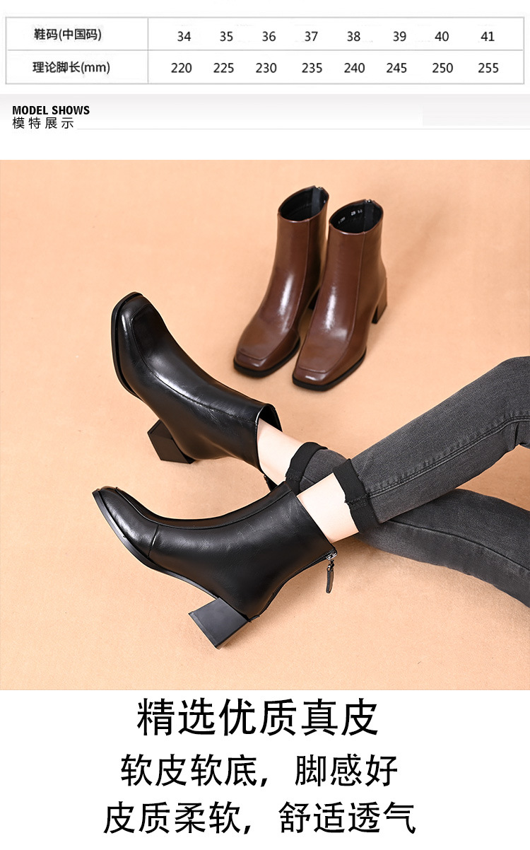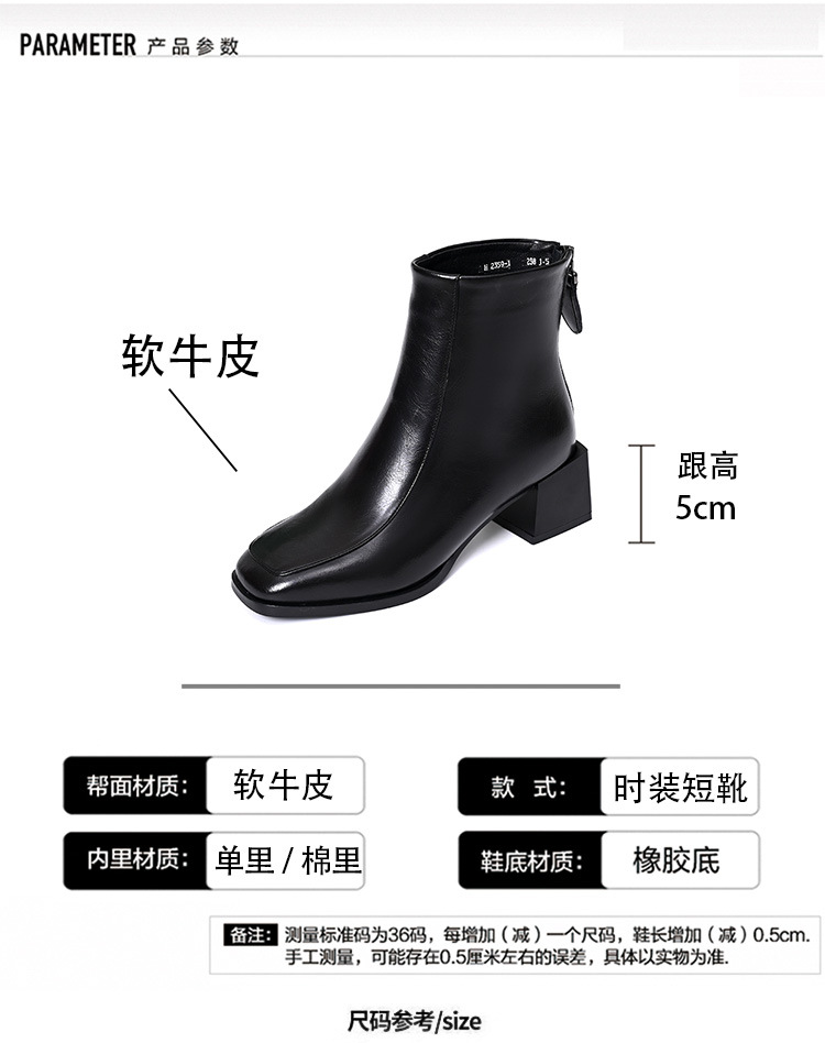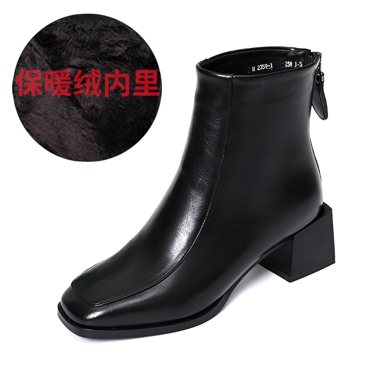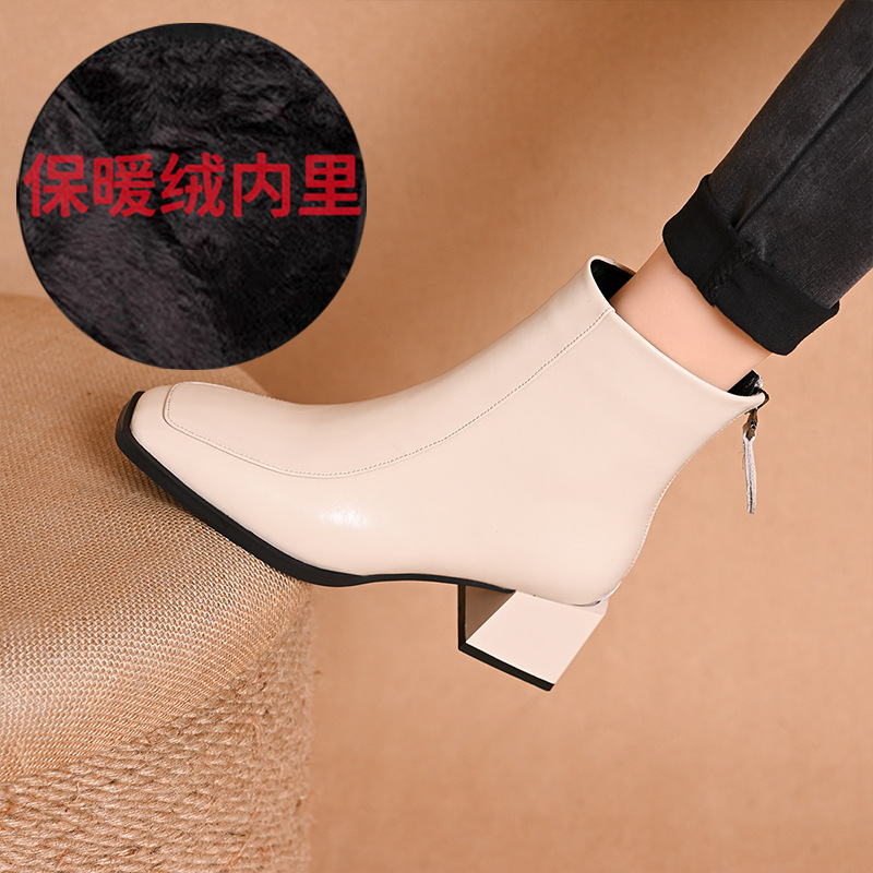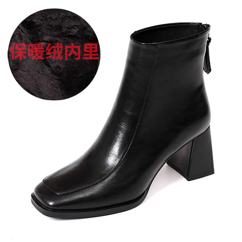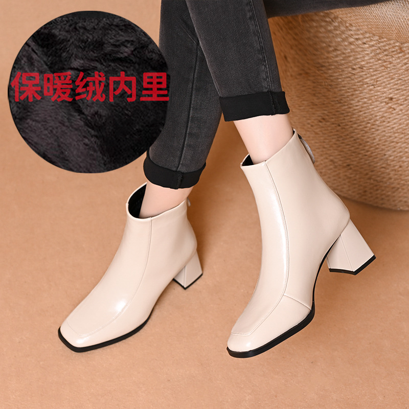 스퀘어 토 쇼트 부츠 여성용 슬림 높이 증가 작은 미드 힐 마틴 부츠 새로운 가을 및 겨울 기모 싱글 부츠 두꺼운 힐 얇은 부츠스토어 가기