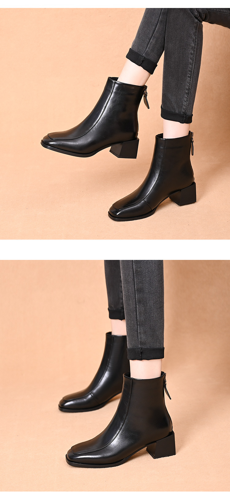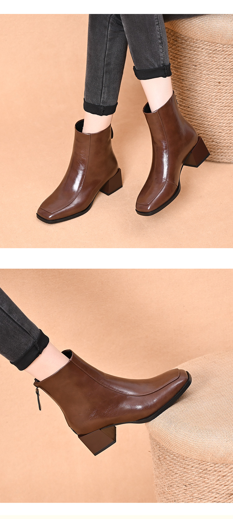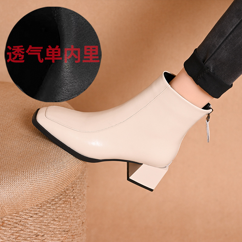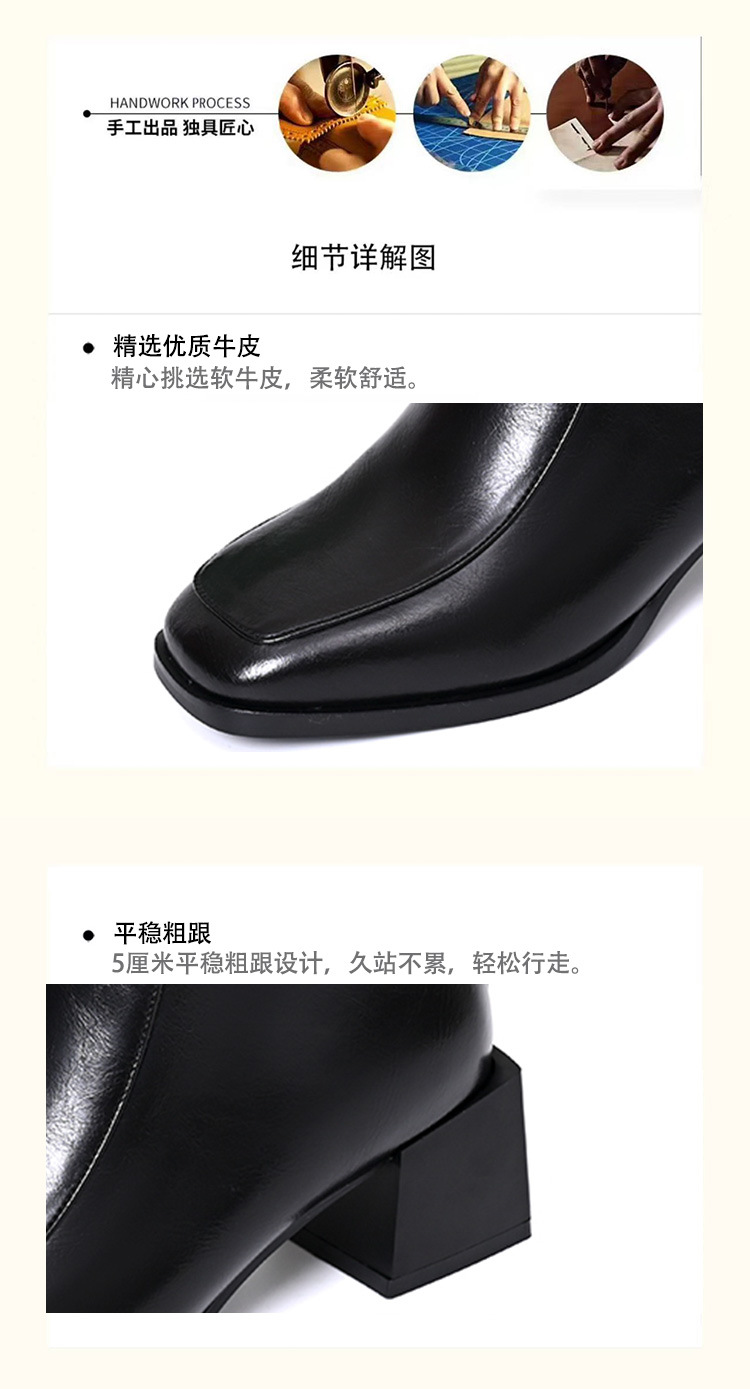 스퀘어 토 쇼트 부츠 여성용 슬림 높이 증가 작은 미드 힐 마틴 부츠 새로운 가을 및 겨울 기모 싱글 부츠 두꺼운 힐 얇은 부츠스토어 가기