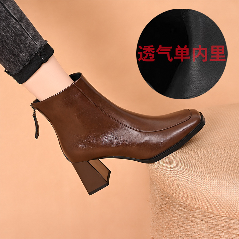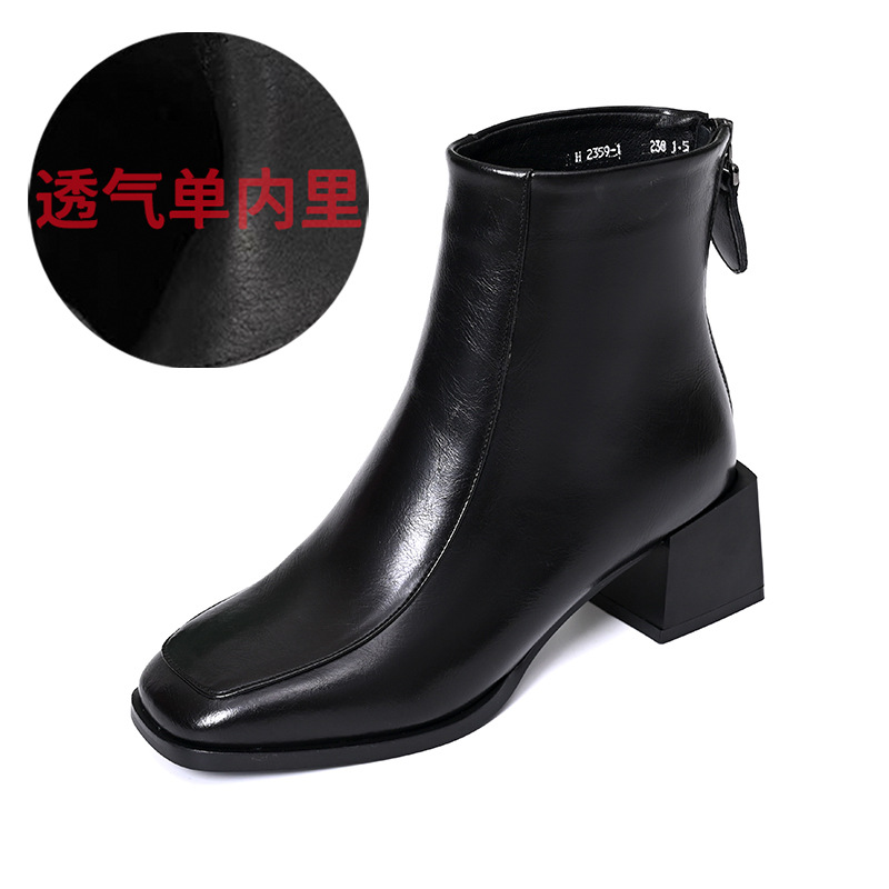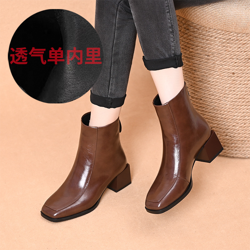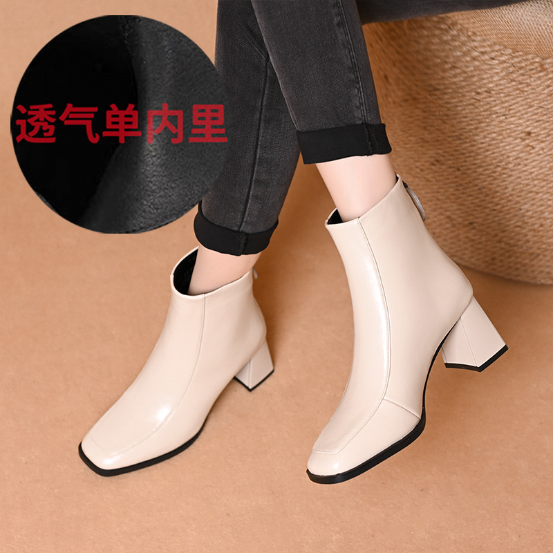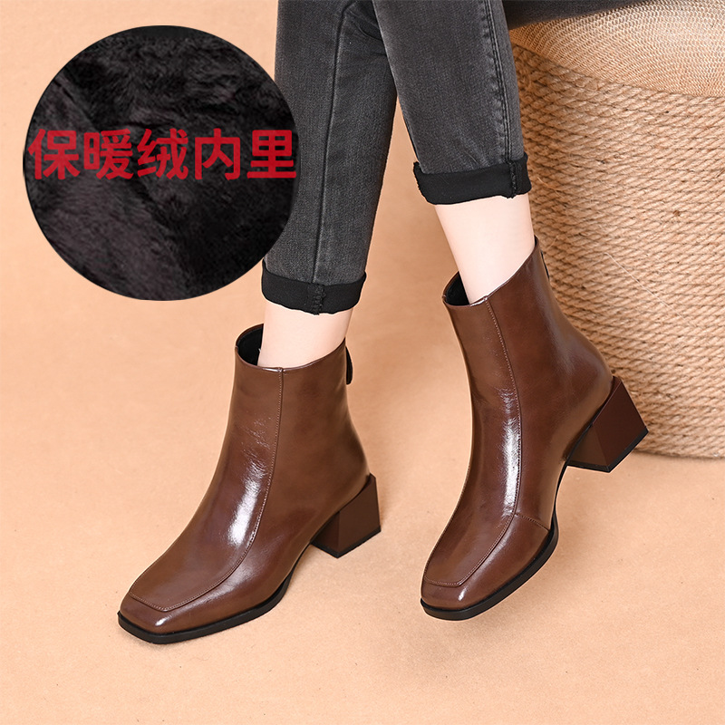 스퀘어 토 쇼트 부츠 여성용 슬림 높이 증가 작은 미드 힐 마틴 부츠 새로운 가을 및 겨울 기모 싱글 부츠 두꺼운 힐 얇은 부츠