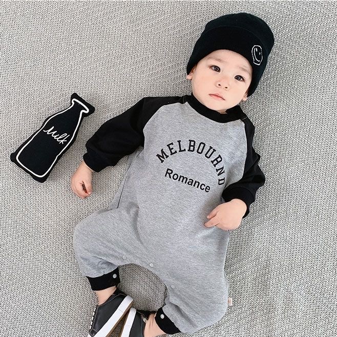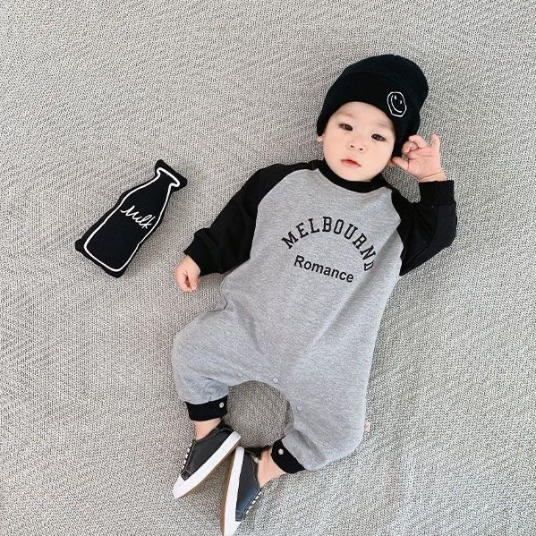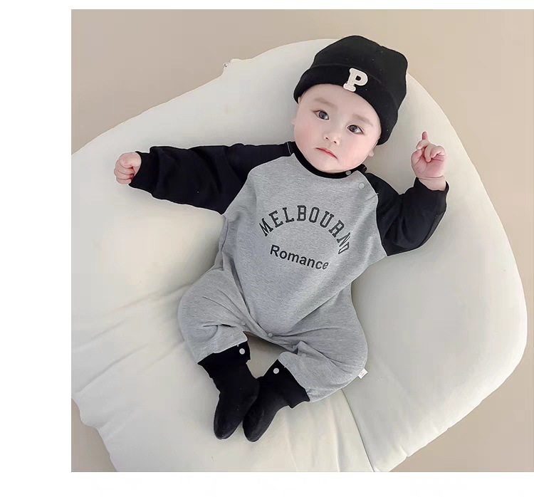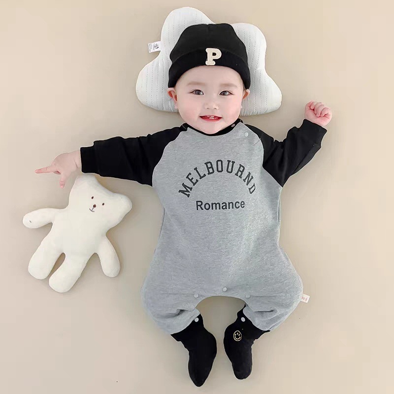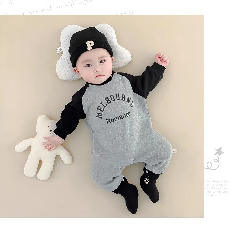 아기 점프 수트 봄과 가을 순면 3-18 개월 아기 소년과 소녀 모자 셔츠 등반 옷 긴 소매 잠옷스토어 가기