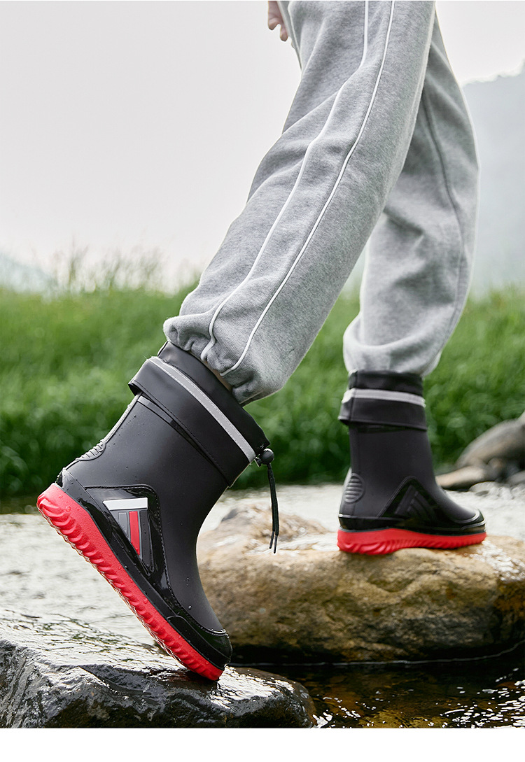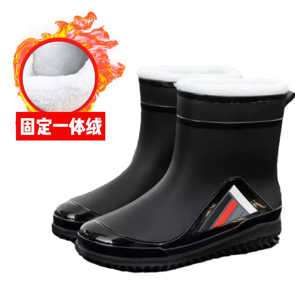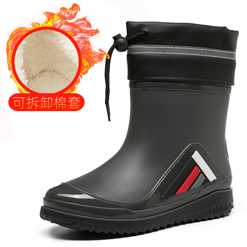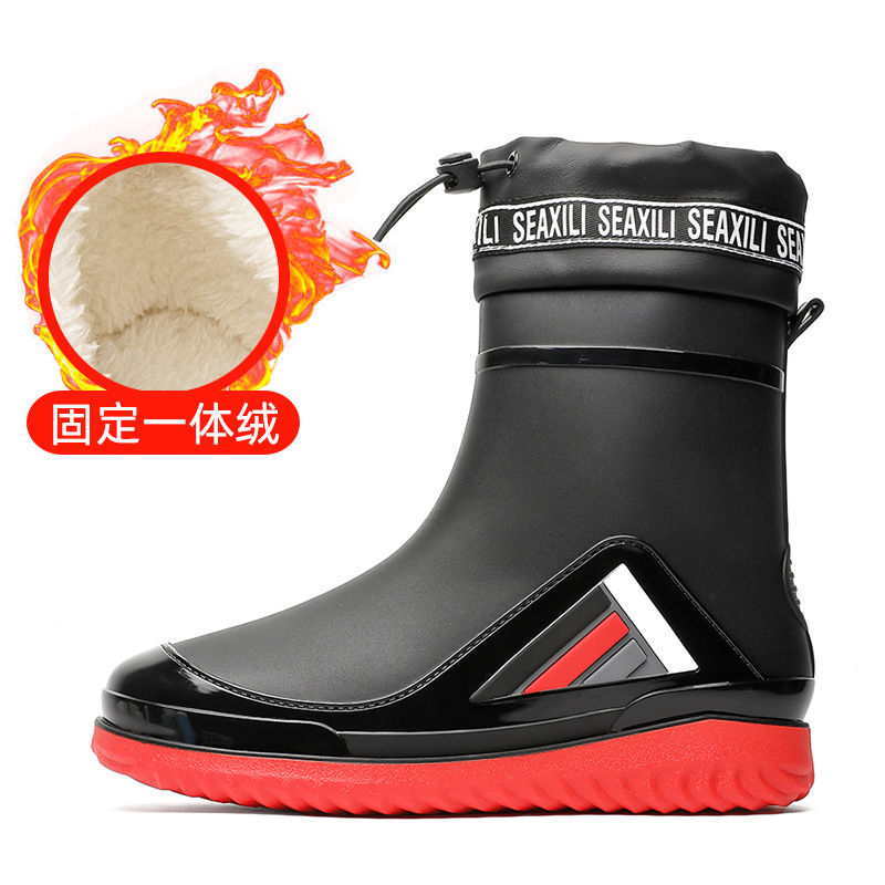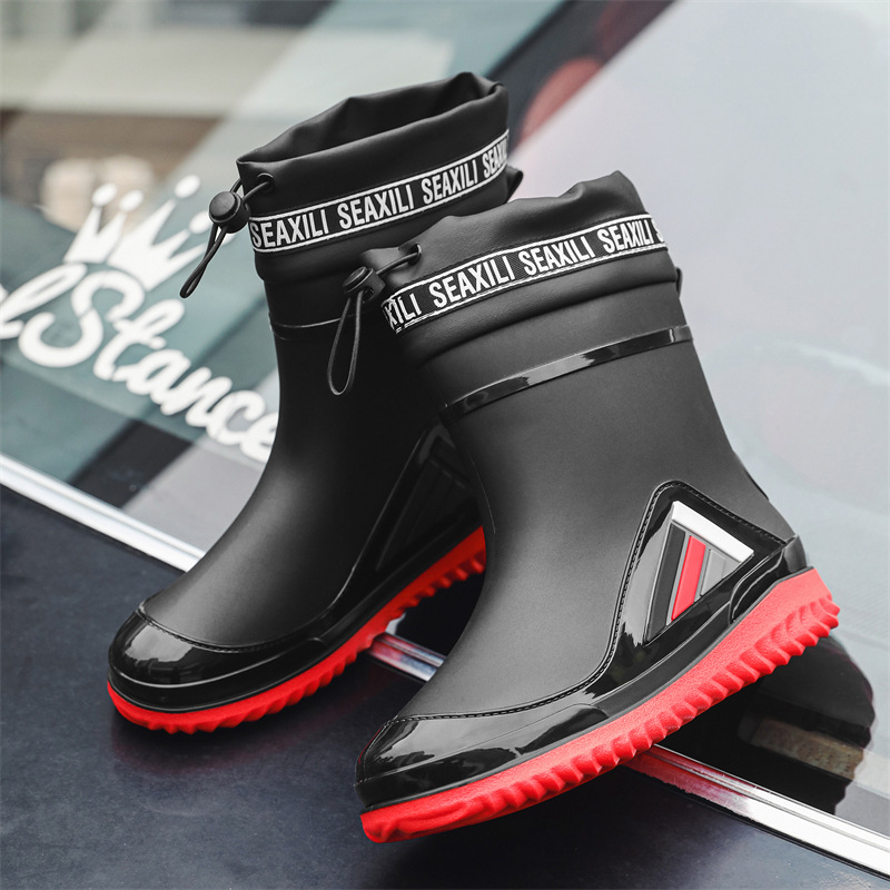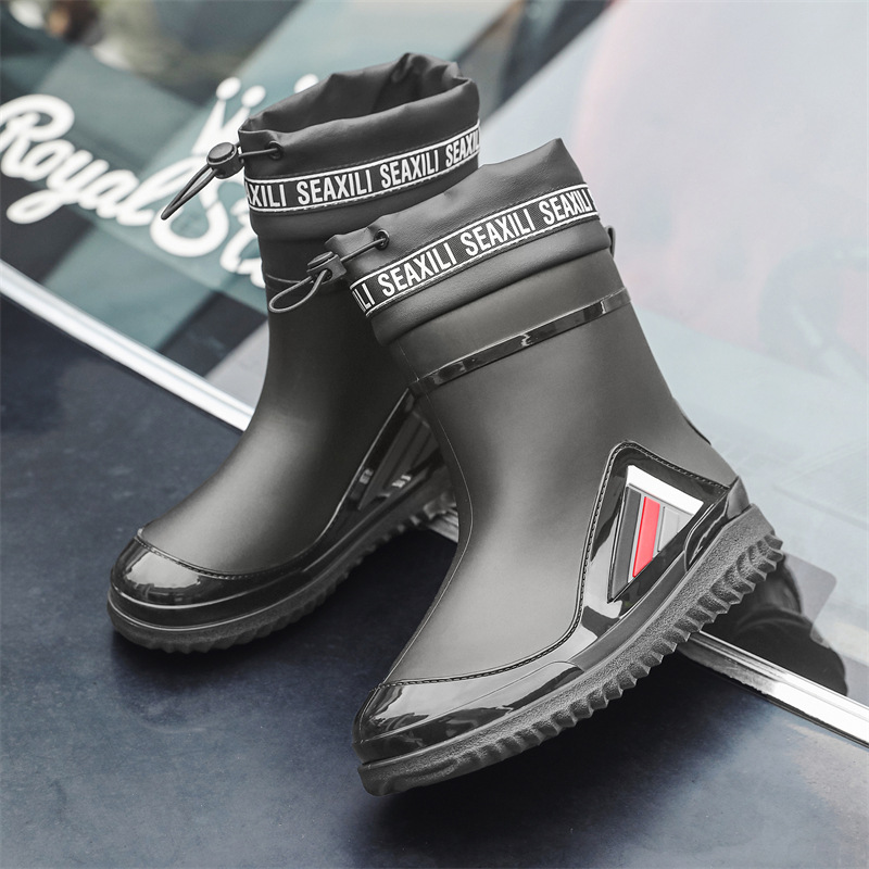 새로운 남성과 여성의 물 신발 캐주얼 두꺼운 밑창 미끄럼 방지 빔 따뜻한 비 신발 낚시 주방 세차 남성 고무 신발스토어 가기