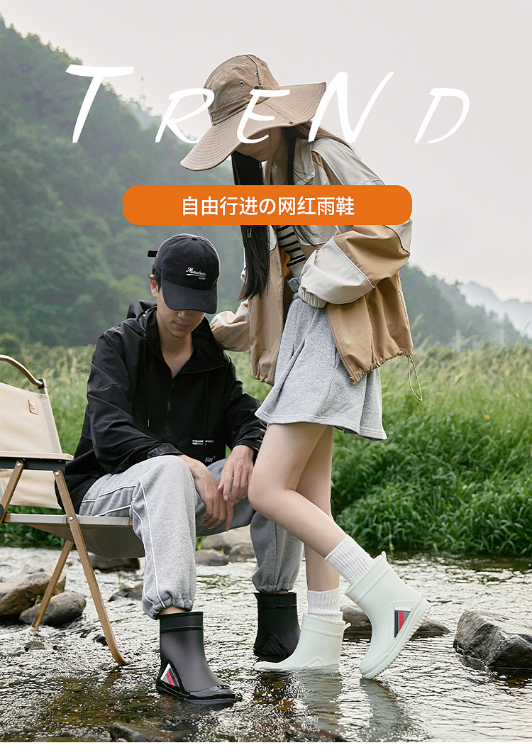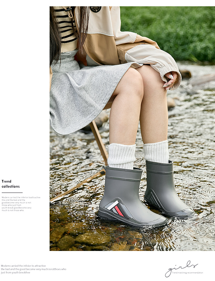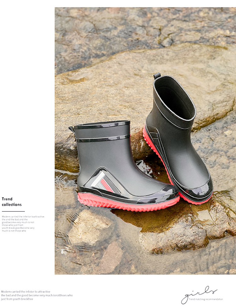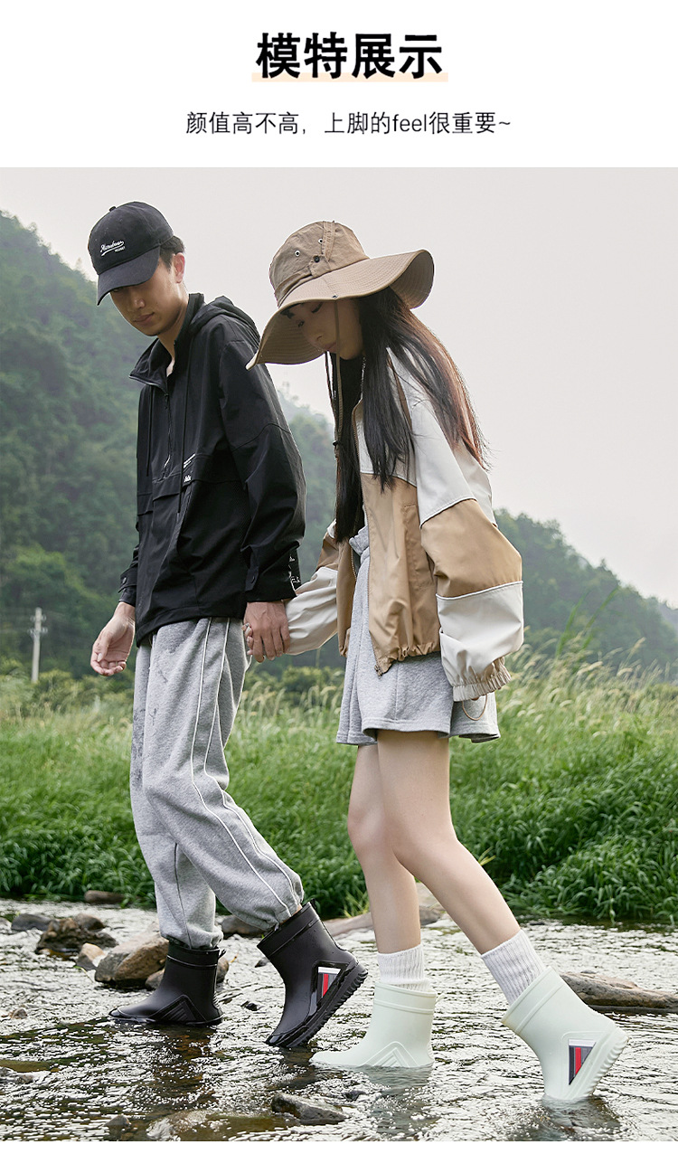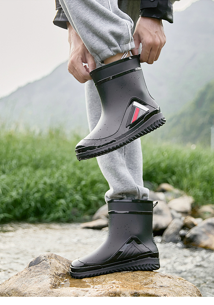 새로운 남성과 여성의 물 신발 캐주얼 두꺼운 밑창 미끄럼 방지 빔 따뜻한 비 신발 낚시 주방 세차 남성 고무 신발스토어 가기