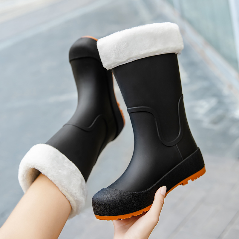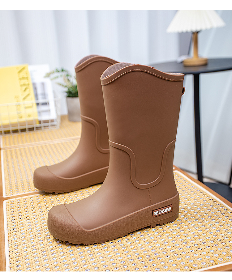여성을위한 새로운 중간 배럴 장화 일본 스타일 간단한 방수 미끄럼 방지 긴 배럴 장우 장화 비오는 날 야외 높은 배럴 고무 신발스토어 가기