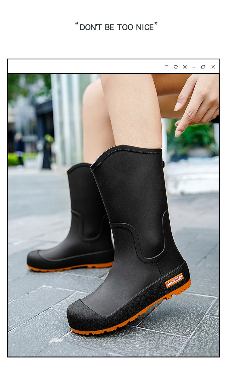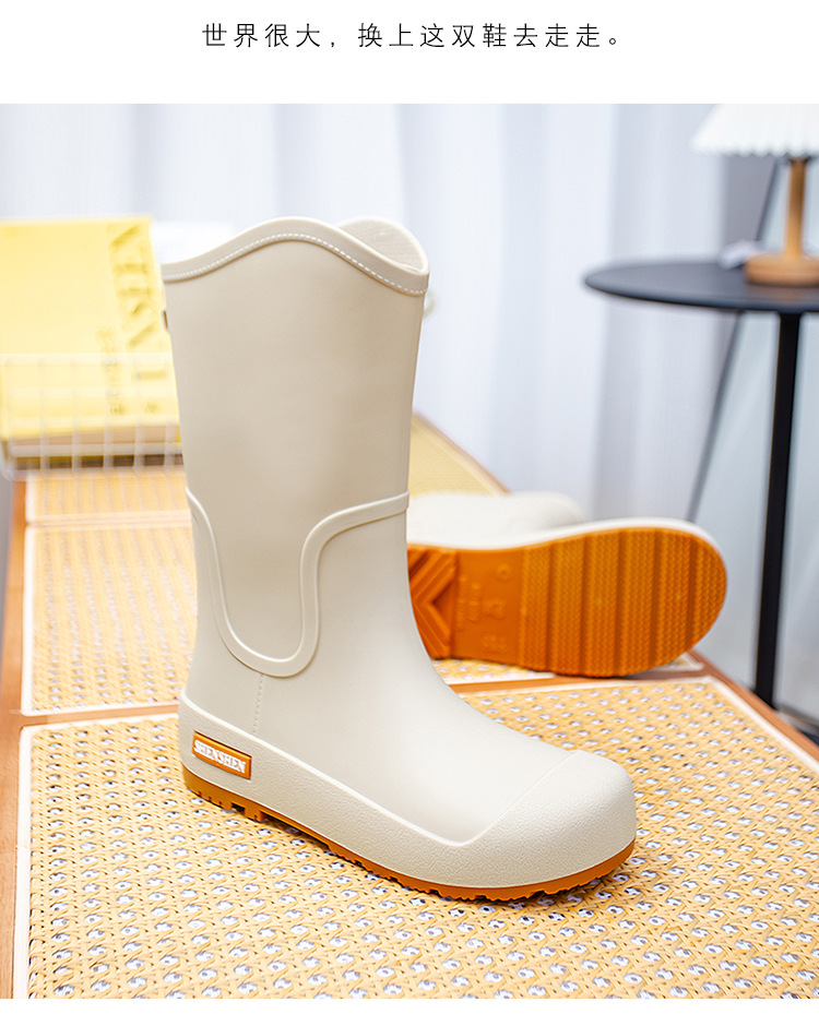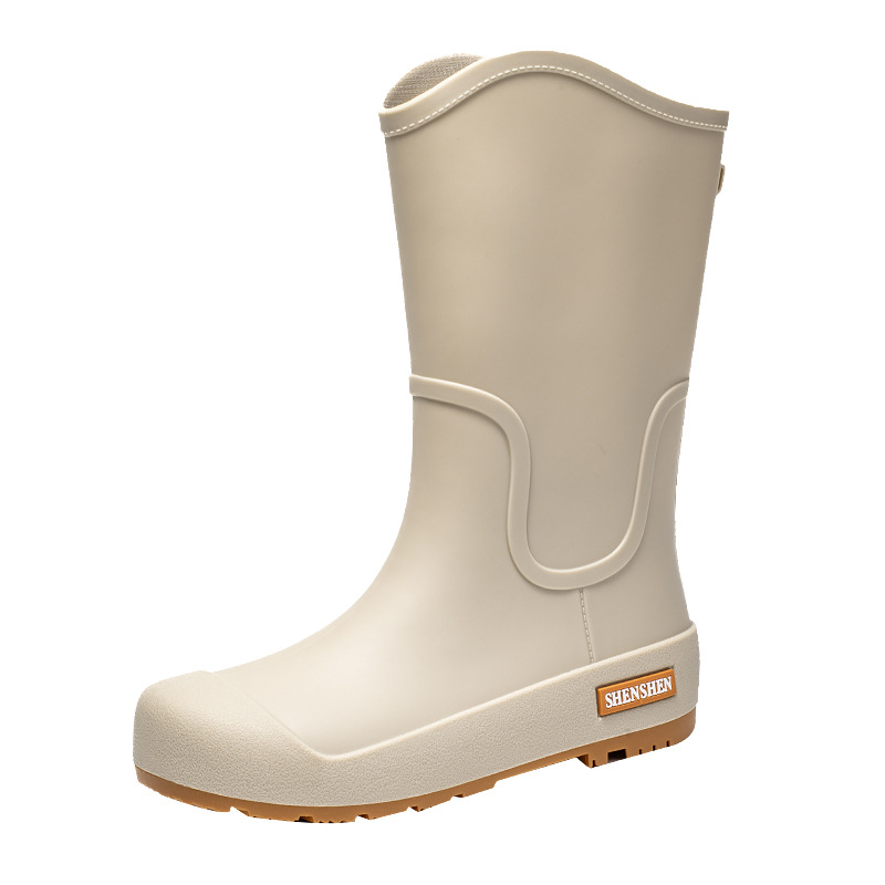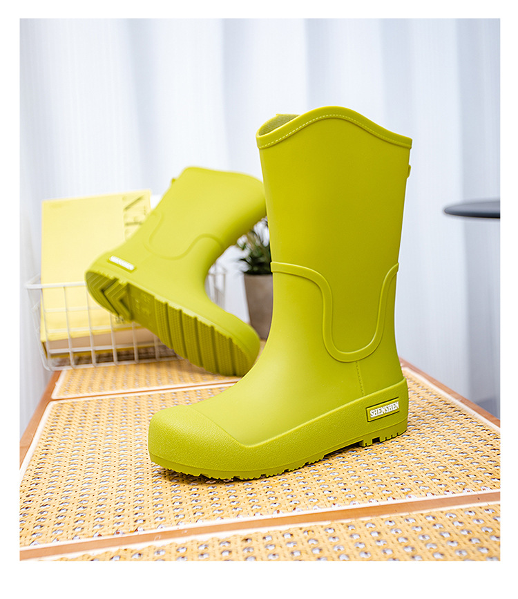 여성을위한 새로운 중간 배럴 장화 일본 스타일 간단한 방수 미끄럼 방지 긴 배럴 장우 장화 비오는 날 야외 높은 배럴 고무 신발