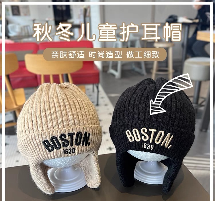 어린이 가을 겨울 한국식 따뜻한 니트 귀 모자 소년 소녀를위한 겨울 방풍 올매치 아기 풀오버 울 모자