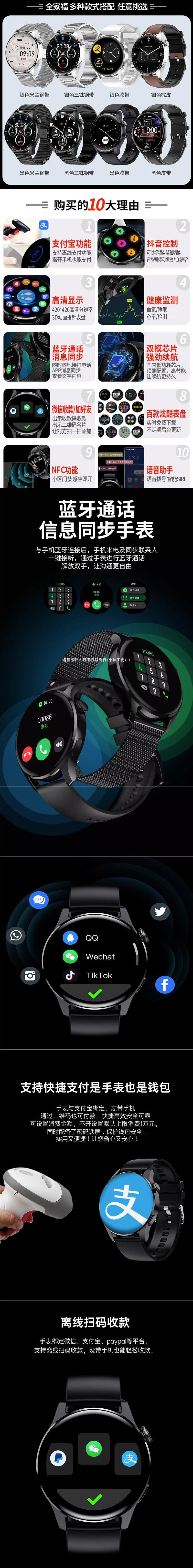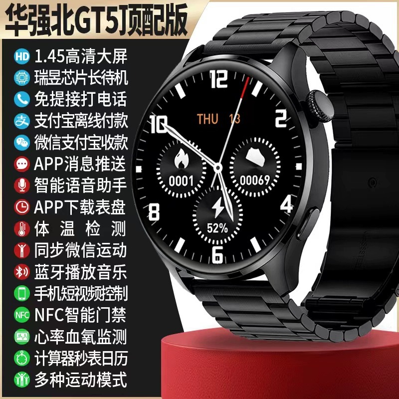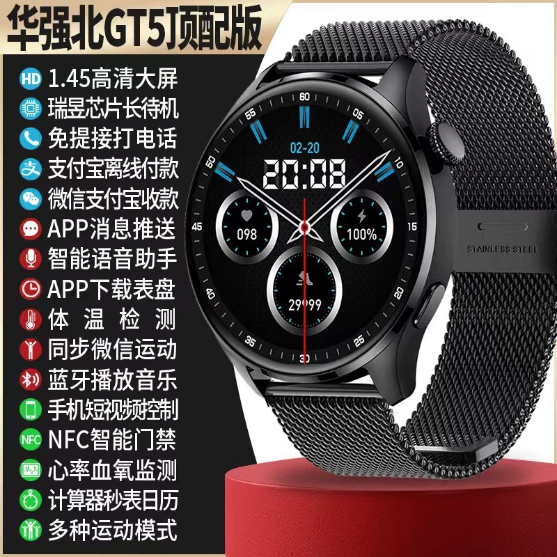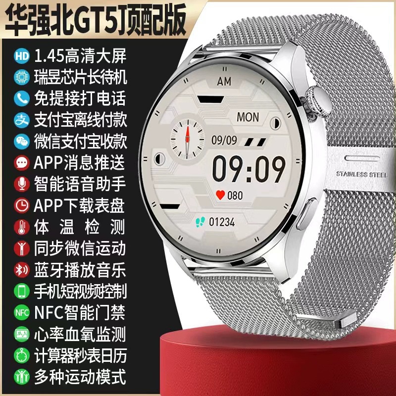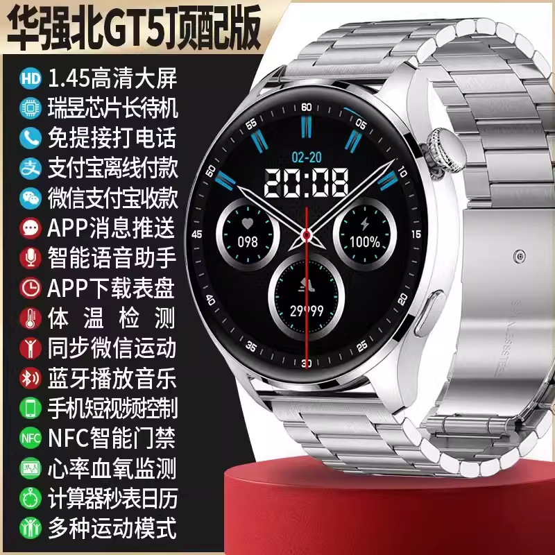 • 실버 삼중 강철 벨트 [고화질 대형 화면 + 핸즈프리 통화 + 오프라인 결제]