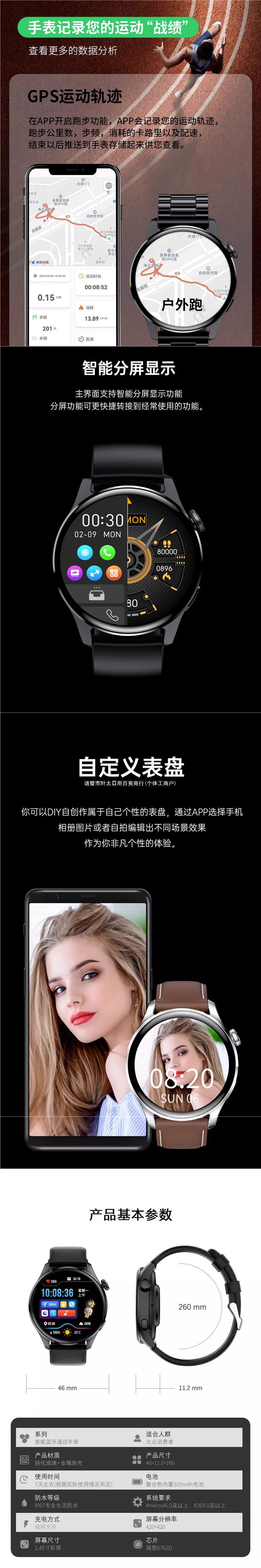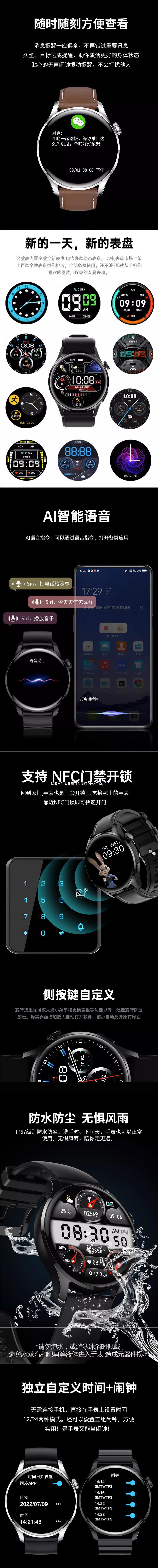 2024 전화 심박수 방수 gt 스마트 시계 혈당 운동 3 새로운 시계 블루투스스토어 가기