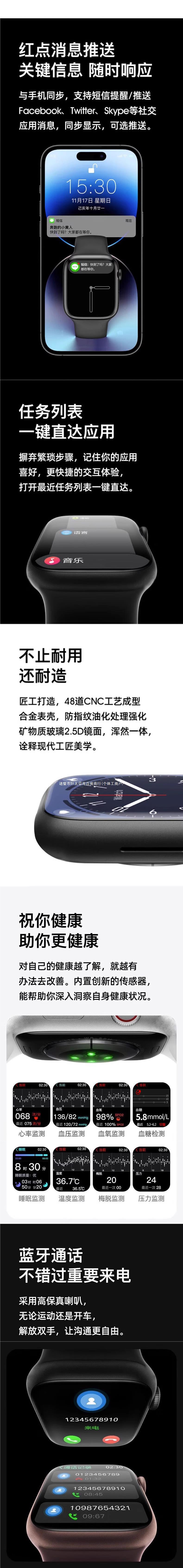 S9 남성과 여성을위한 다기능 스마트 시계 혈당 측정 심박수 운동 블루투스 성인 팔찌 정품 Huaqiang North