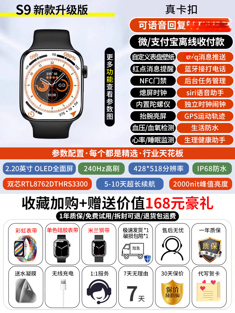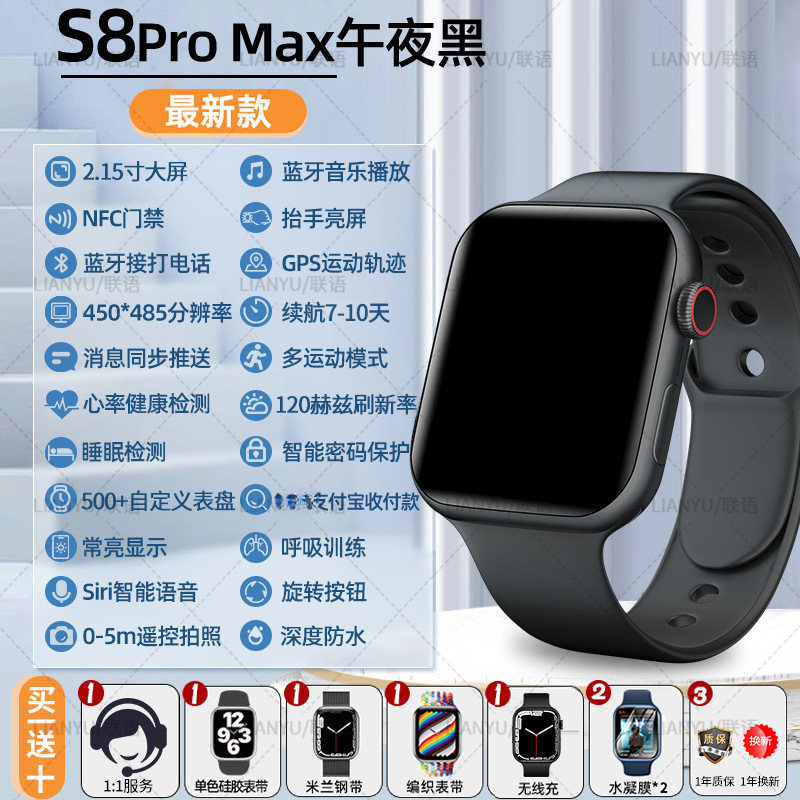 • S9Pro max [스페이스 블랙] 240HZ 재생률 + 전화 걸기 및 걸기 + 무선 충전 + 메시지 푸시 + 오프라인 결제 + 스마트 아일랜드 업그레이드 + N