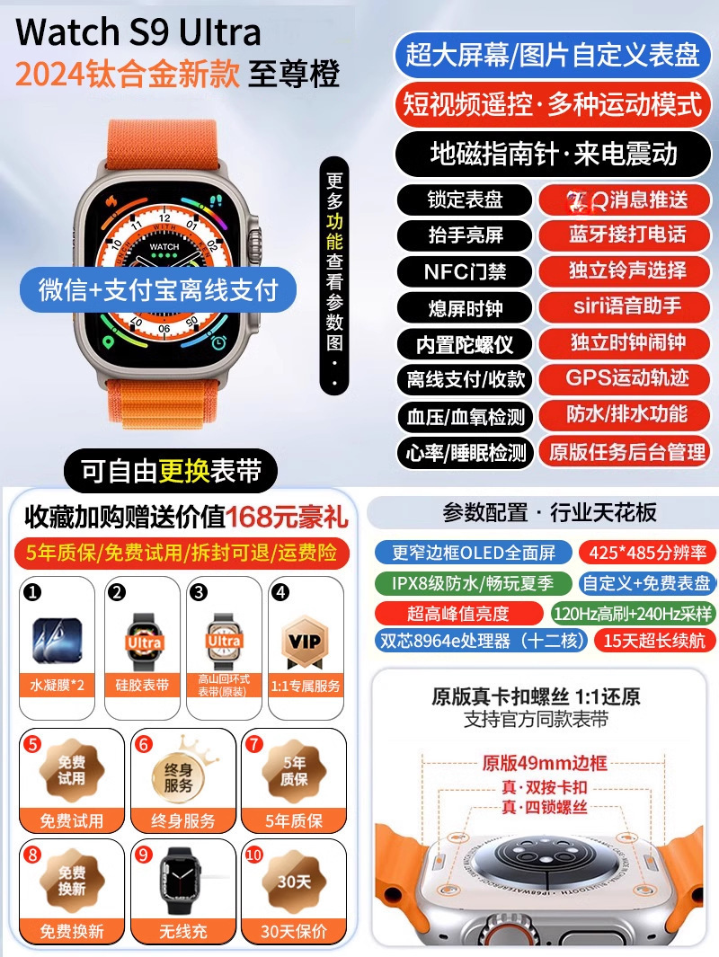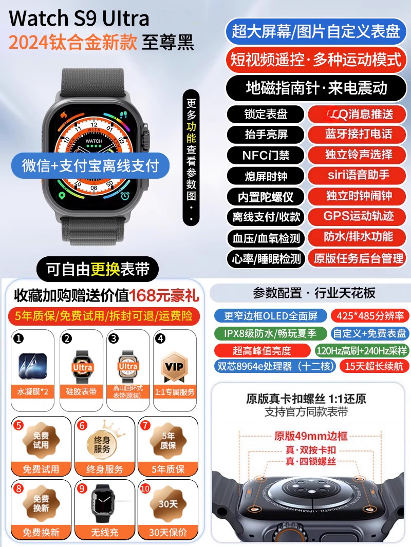 • S9Ultra max [스페이스 블랙] 240HZ 재생률 + 전화 걸기 및 걸기 + 무선 충전 + 메시지 푸시 + 오프라인 결제 + 스마트 아일랜드 업그레이드