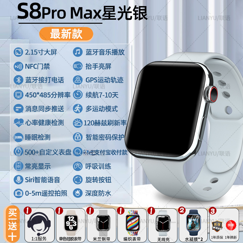 • S9Ultra max [스타리 스카이 실버] 240HZ 재생률 + 전화 걸기 및 걸기 + 무선 충전 + 메시지 푸시 + 오프라인 결제 + 스마트 아일랜드 업그레이드