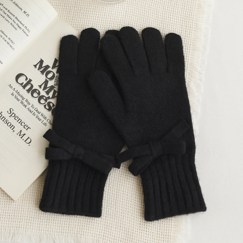 한국 스타일 귀여운 활 니트 울 장갑 여성의 가을과 겨울 방한식 라이딩 따뜻한 손가락 장갑 터치 스크린