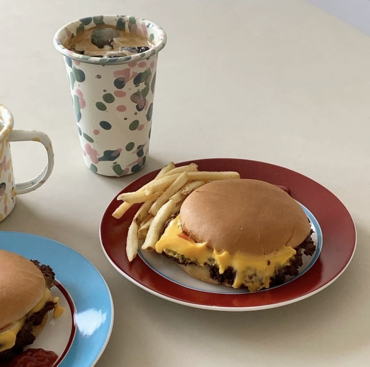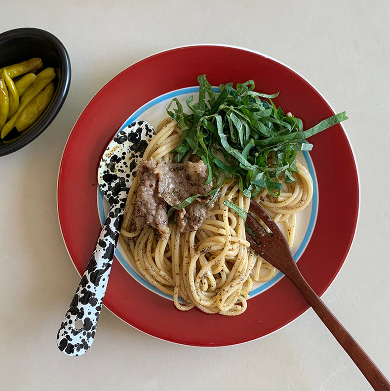 Ins 간단한 빈티지 레드 블루 라인 Psta 플레이트 디너 플레이트 살라 플레이트 디저트 플레이트 블루 아름다운 사진 플레이트스토어 가기
