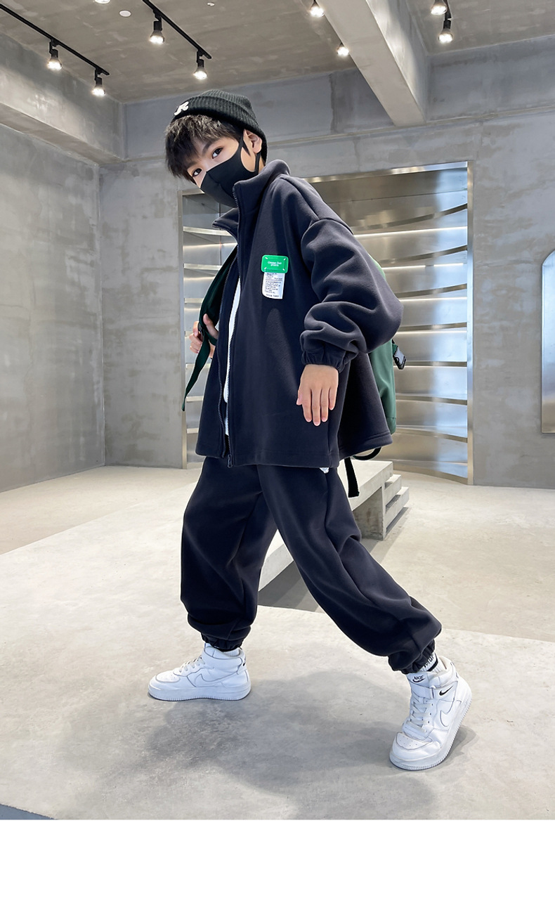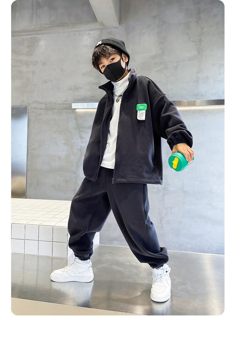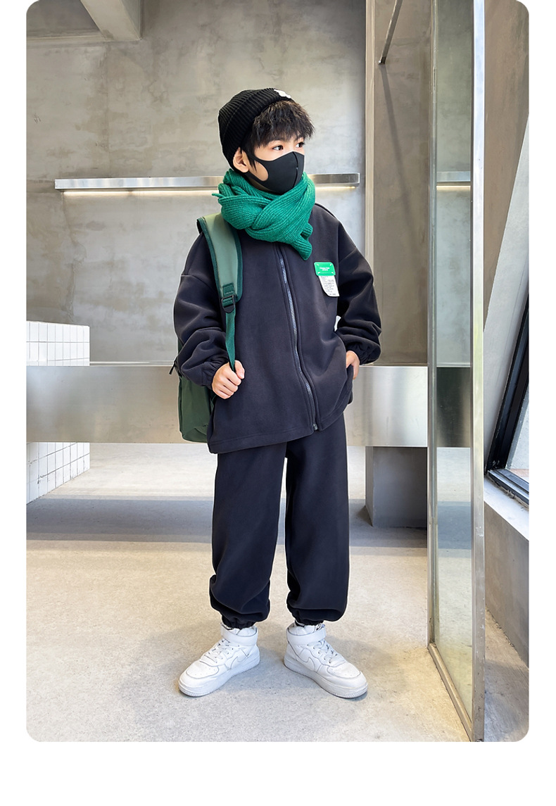 2024 가을과 겨울 소년들은 2 피스 Huzhou Zhili 아동복 어린이 칼라 카디건 기모 스웨터 세트 따뜻하게합니다.스토어 가기