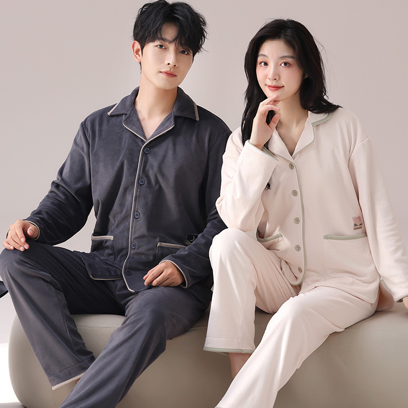 2025년 신상품 독일산 벨벳 커플 잠옷 여성 남성 가을 겨울 보온 플러스 벨벳 두꺼운 홈웨어 비코랄벨벳