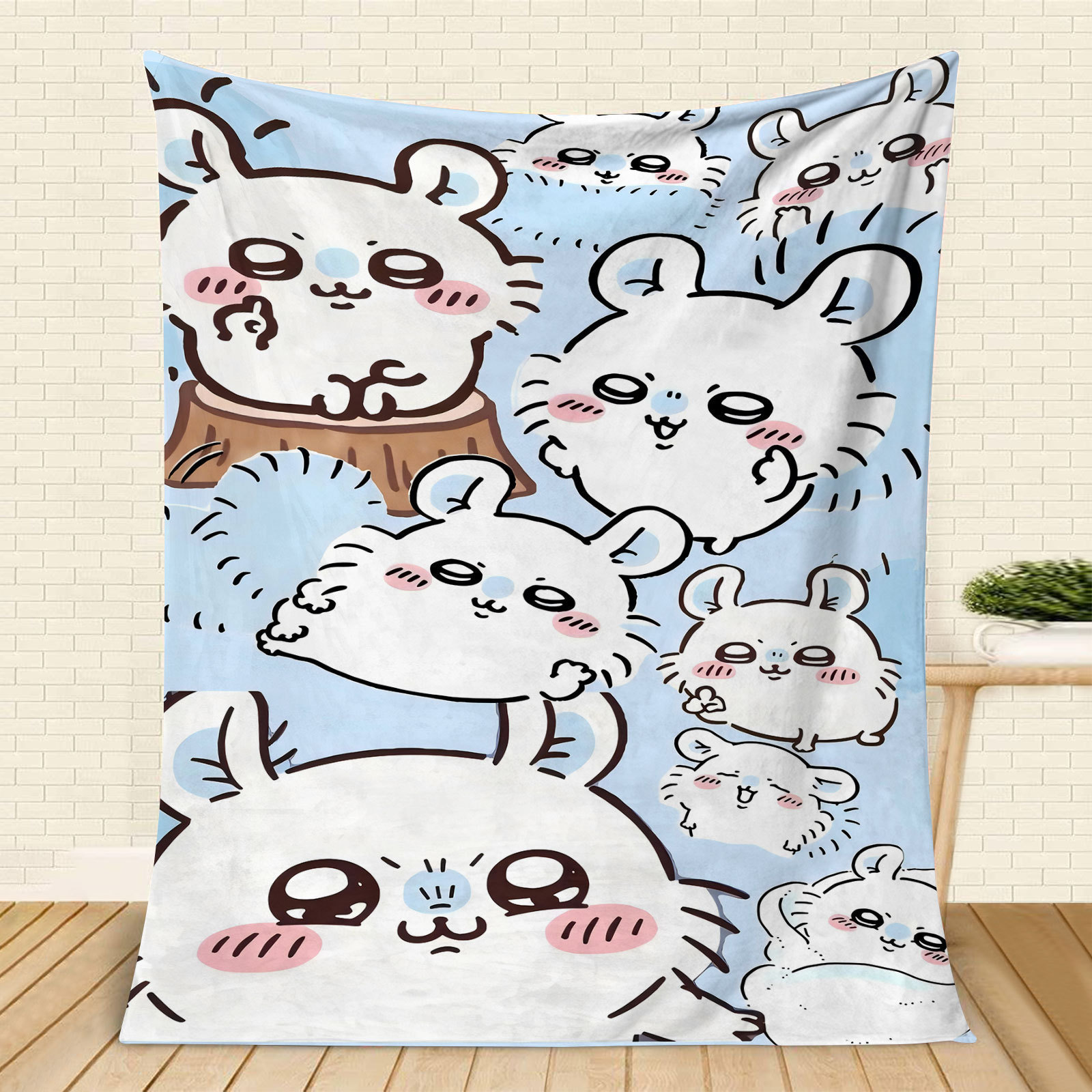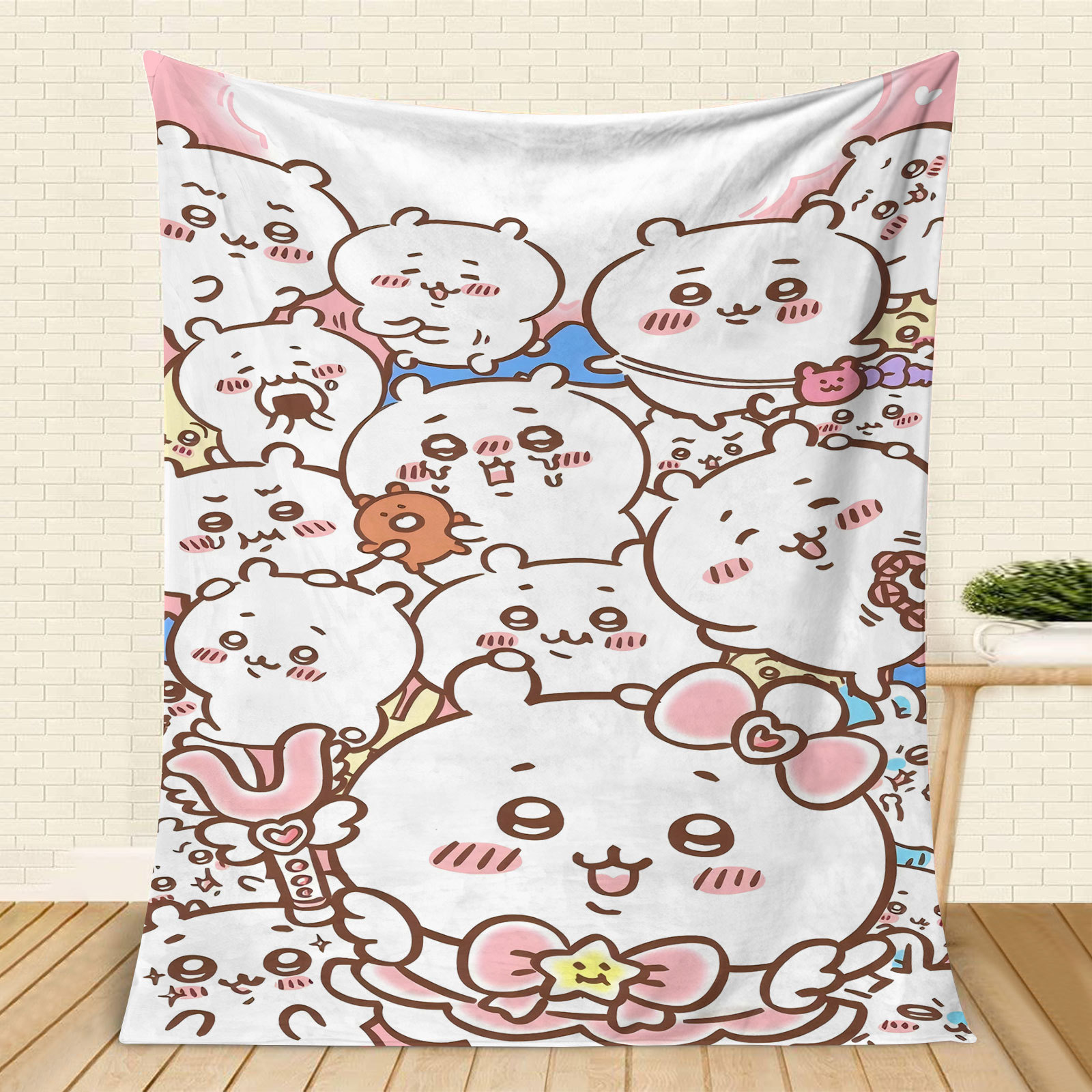 국경 간 Chiikawa Jiyka 와우 주변 담요 슈퍼 귀여운 핑크 플란넬 에어컨 낮잠 담요스토어 가기