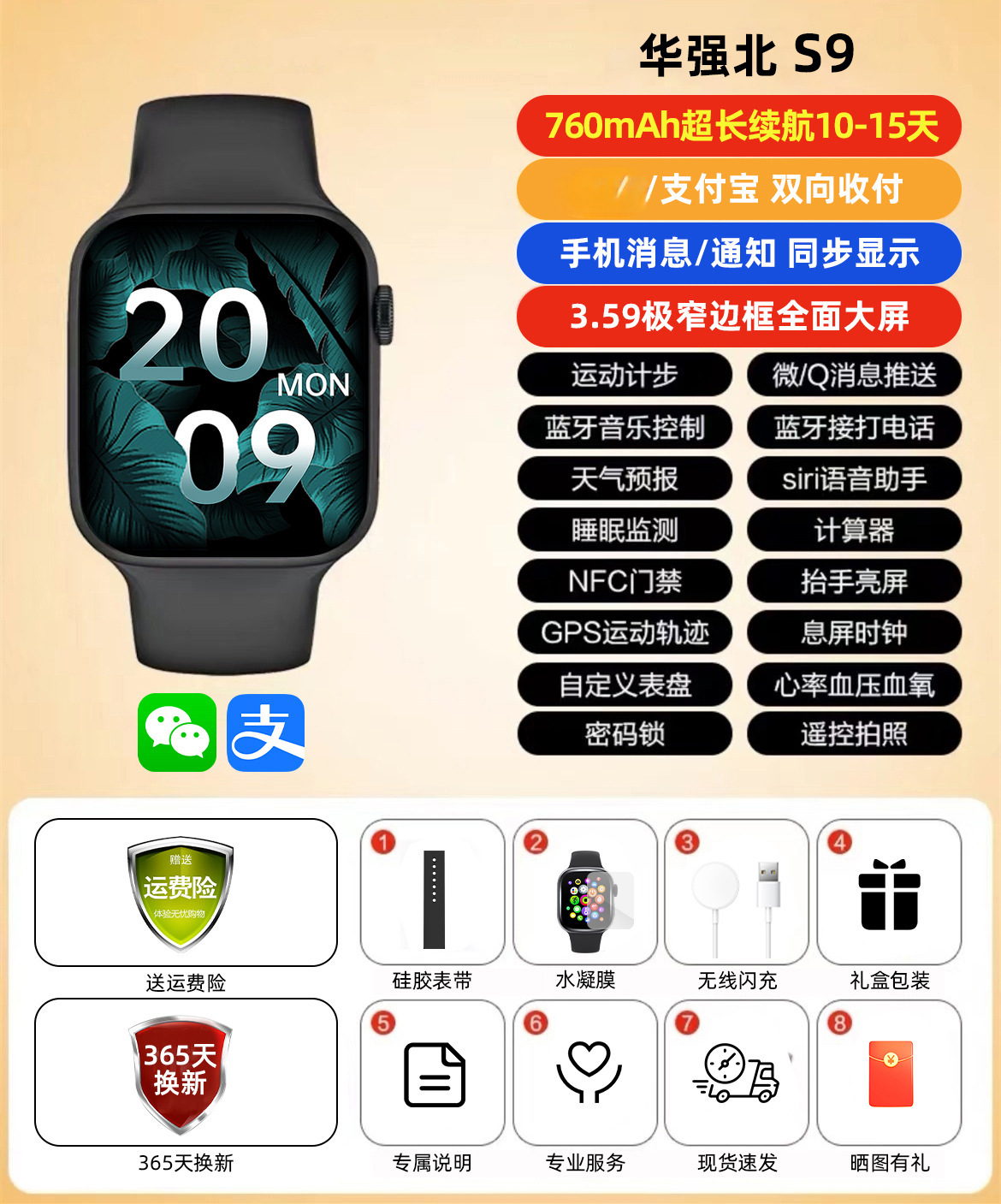 새로운 최고 버전 watches8 스포츠 시계 다기능 전화 블랙 기술 방수 Huaqiangbei 휴대 전화스토어 가기