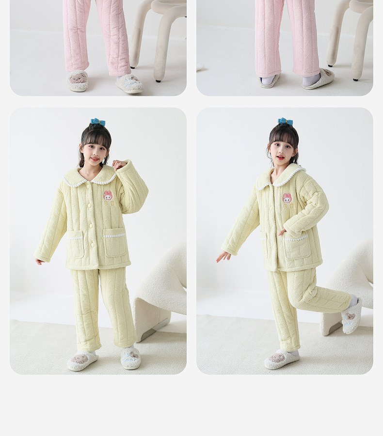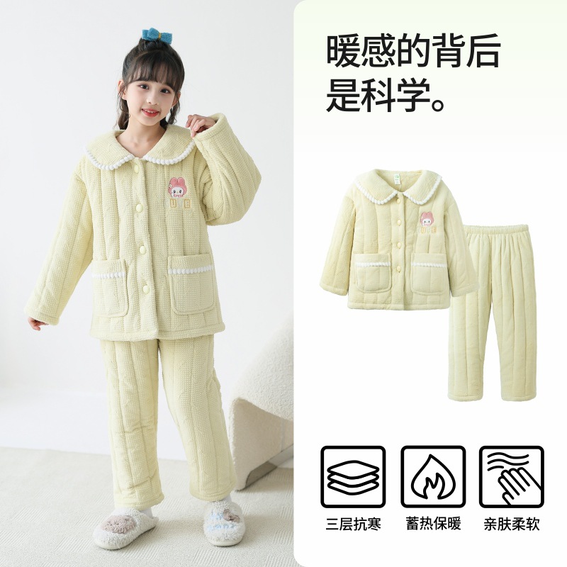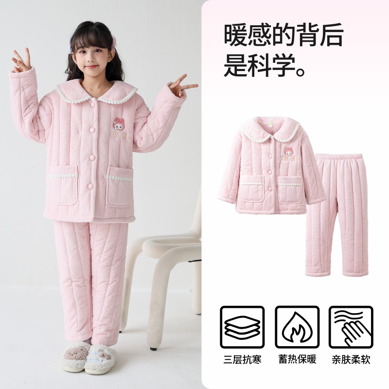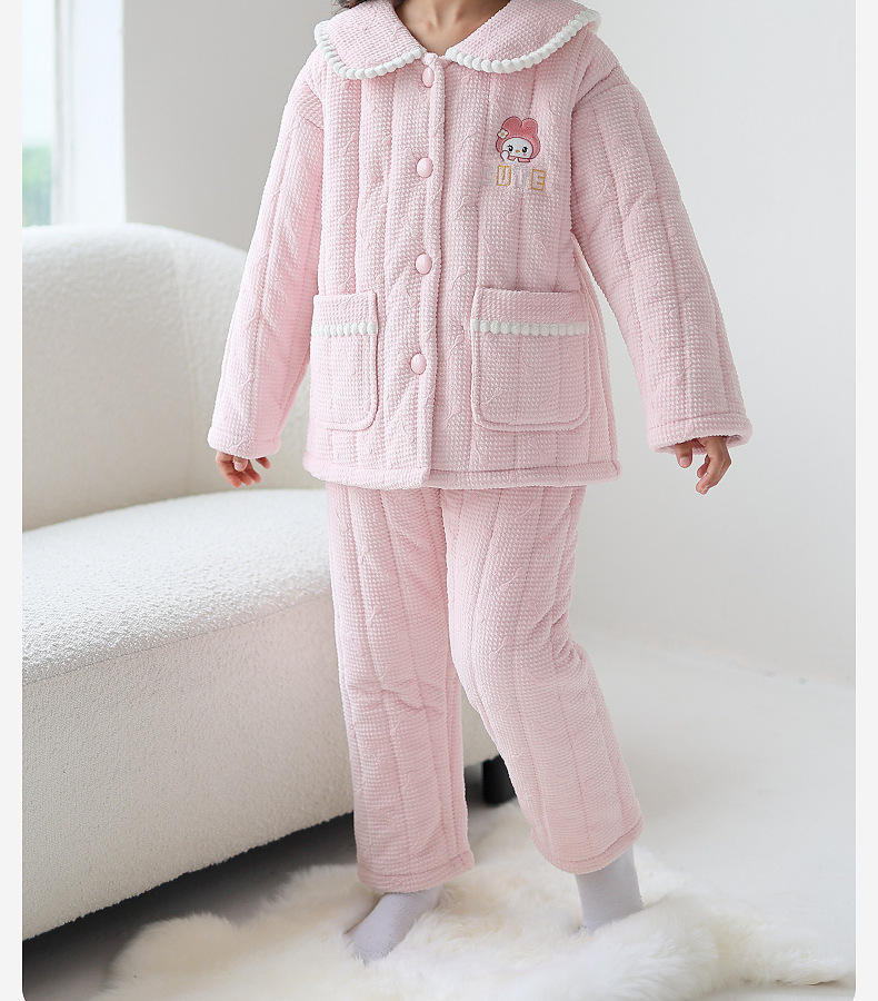 룰루 소 여자 어린이 파자마 겨울 플란넬 3 층 면 두꺼운 따뜻한 소녀 중 큰 어린이 가정 옷스토어 가기