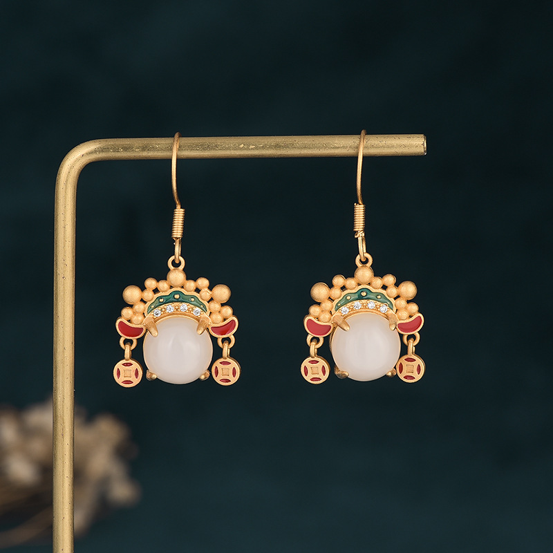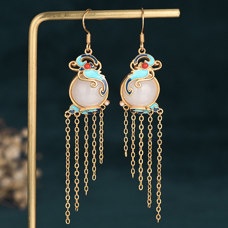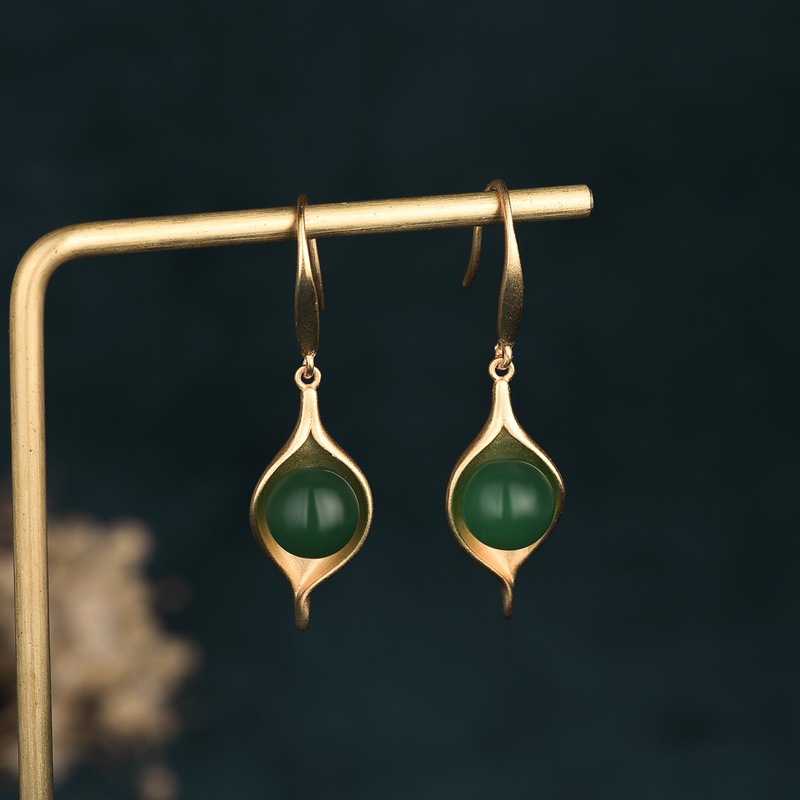 한후 궁전 중국 귀걸이 중국 패션 레트로 스타일 헤티 옥 귀걸이 송 왕조 클래식 귀걸이 청삼 술 마오 렌