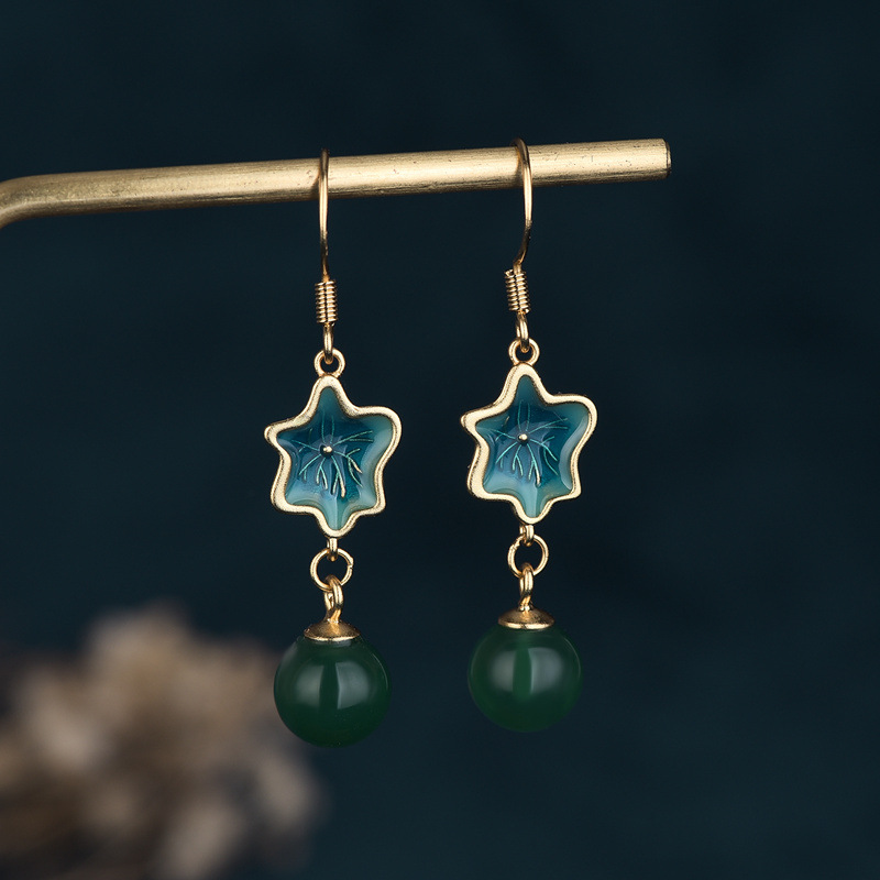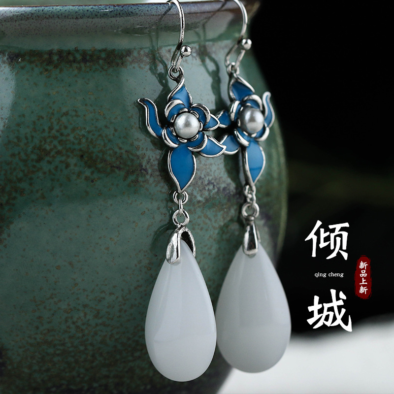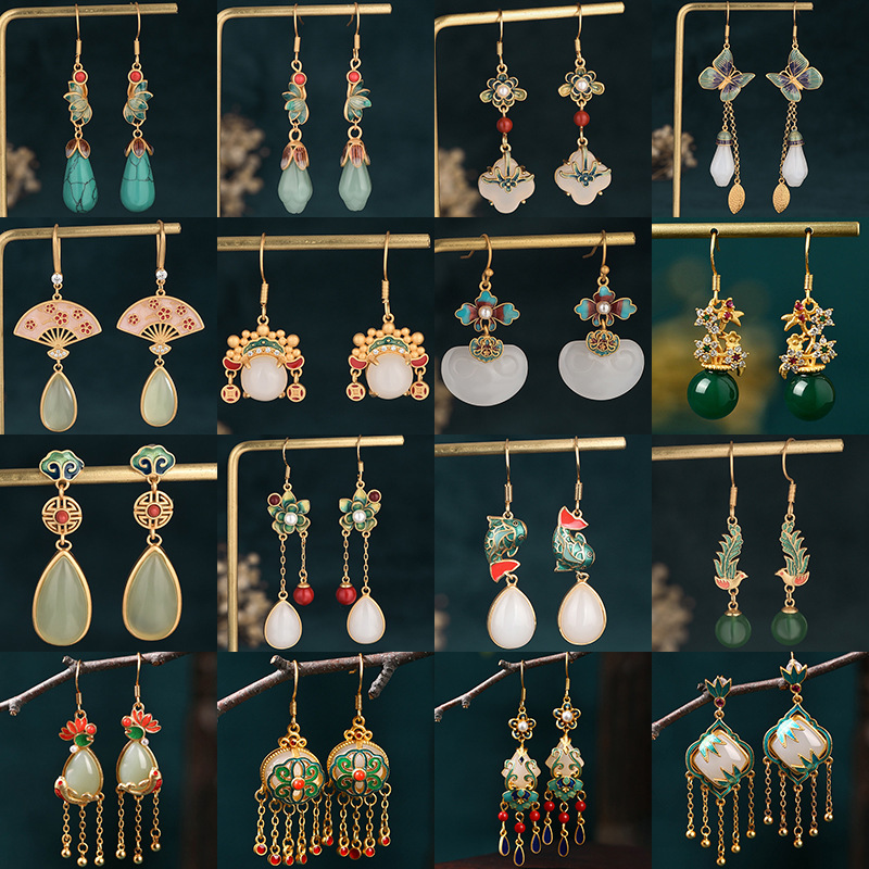 한후 궁전 중국 귀걸이 중국 패션 레트로 스타일 헤티 옥 귀걸이 송 왕조 클래식 귀걸이 청삼 술 마오 렌스토어 가기