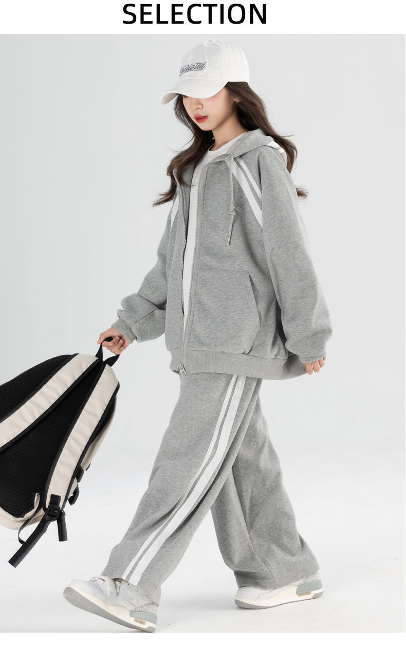 • 헤더 그레이 후드 재킷 + 바지