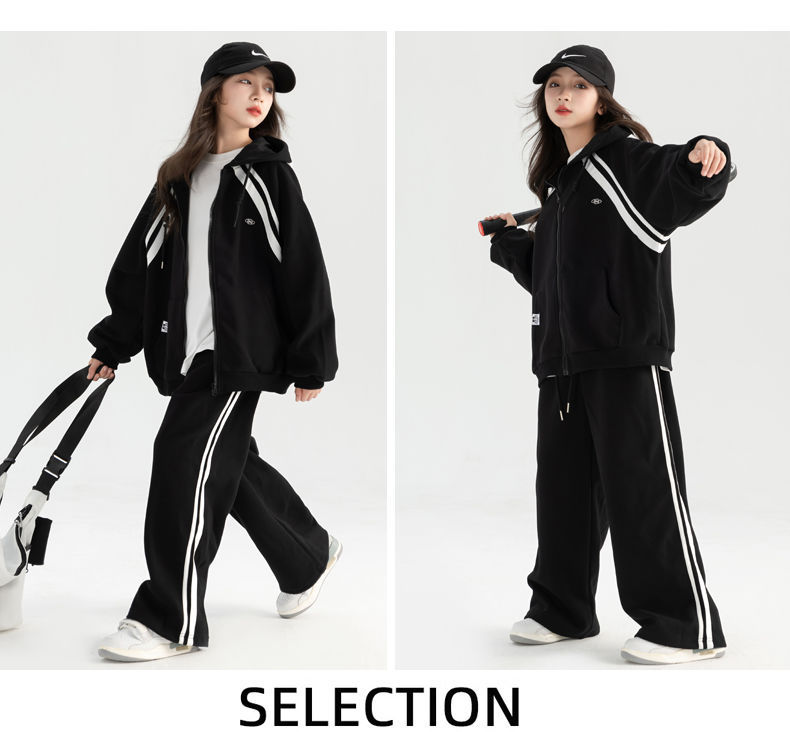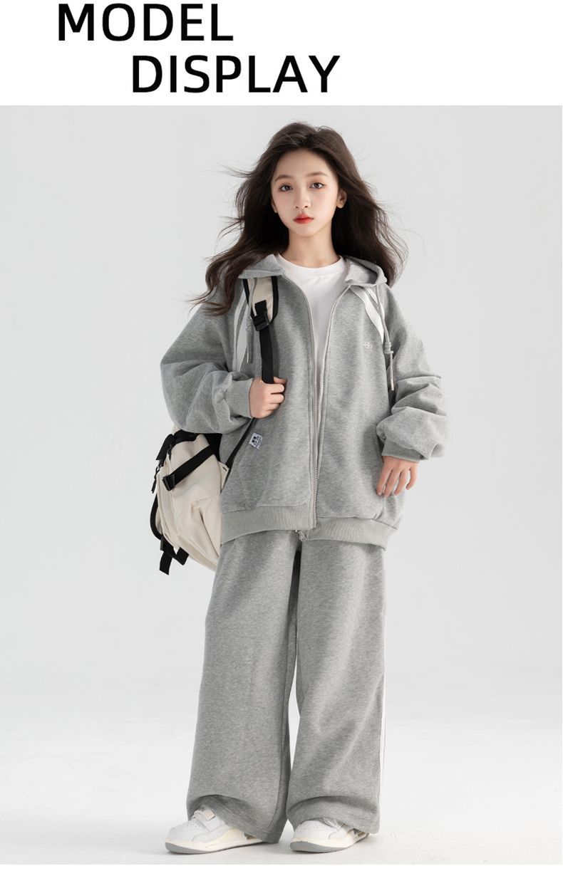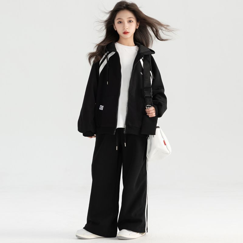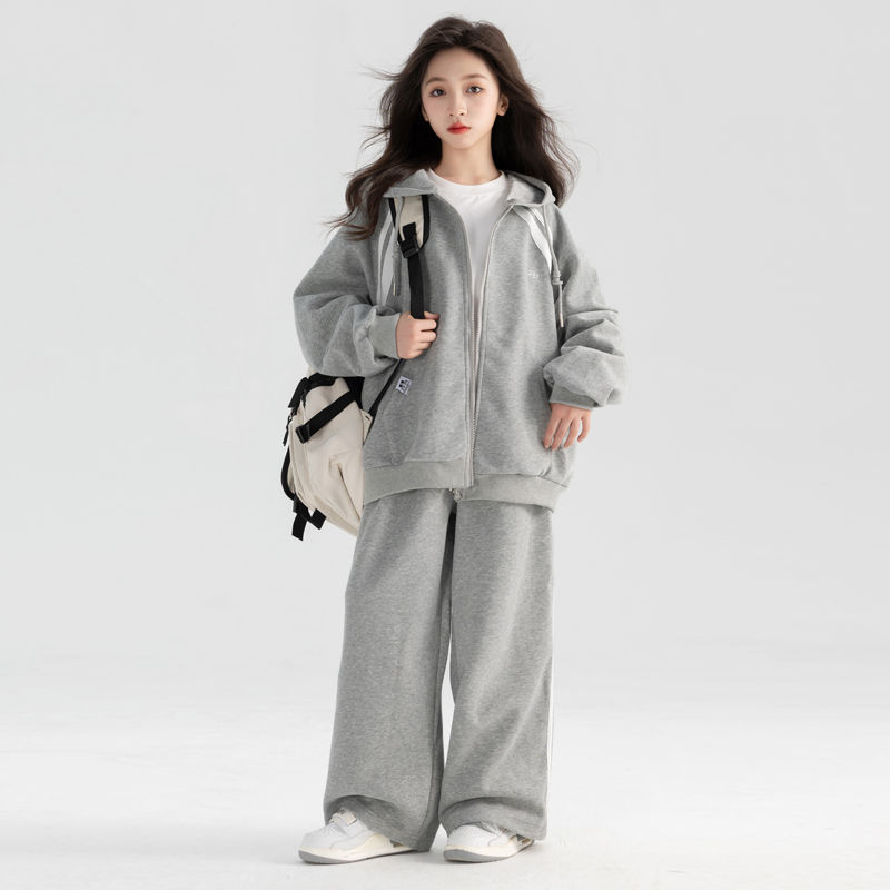 소녀 아기의 한국식 가을 옷 중 · 대형 어린이 봄 · 가을 새 서양식 후디 패셔너블 캐주얼 바지 투피스 세트를위한 세트스토어 가기