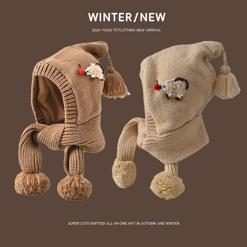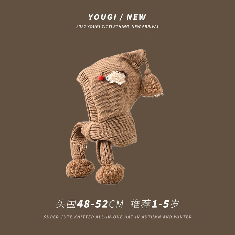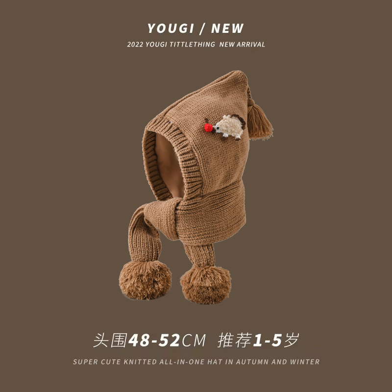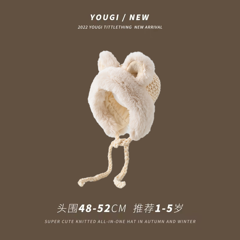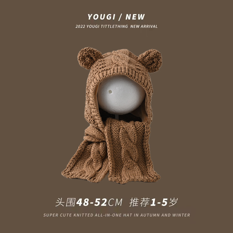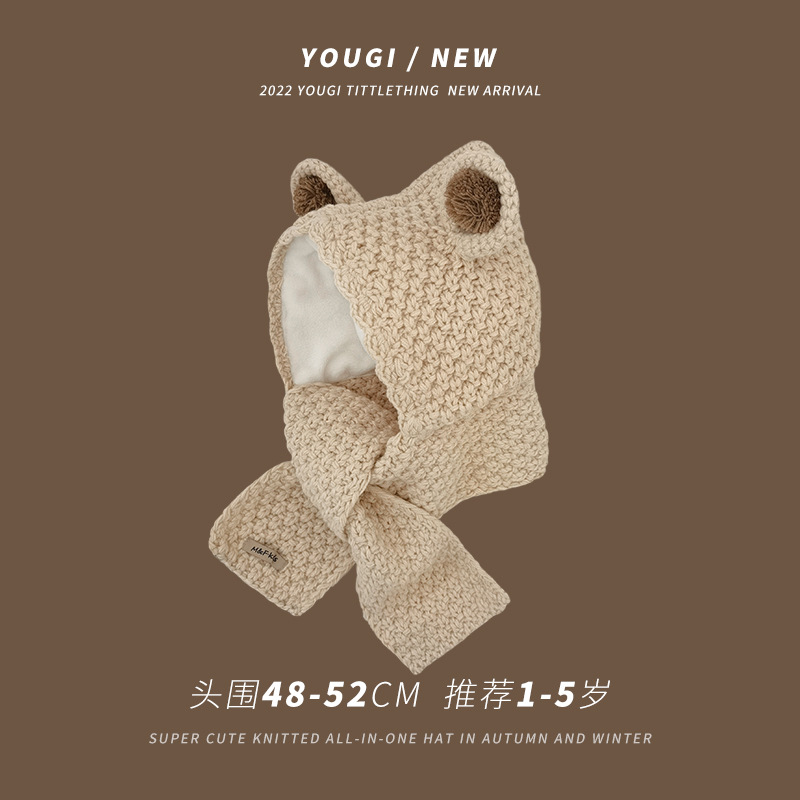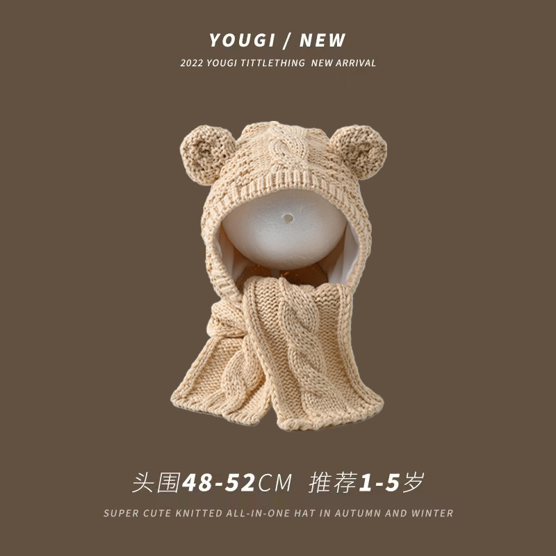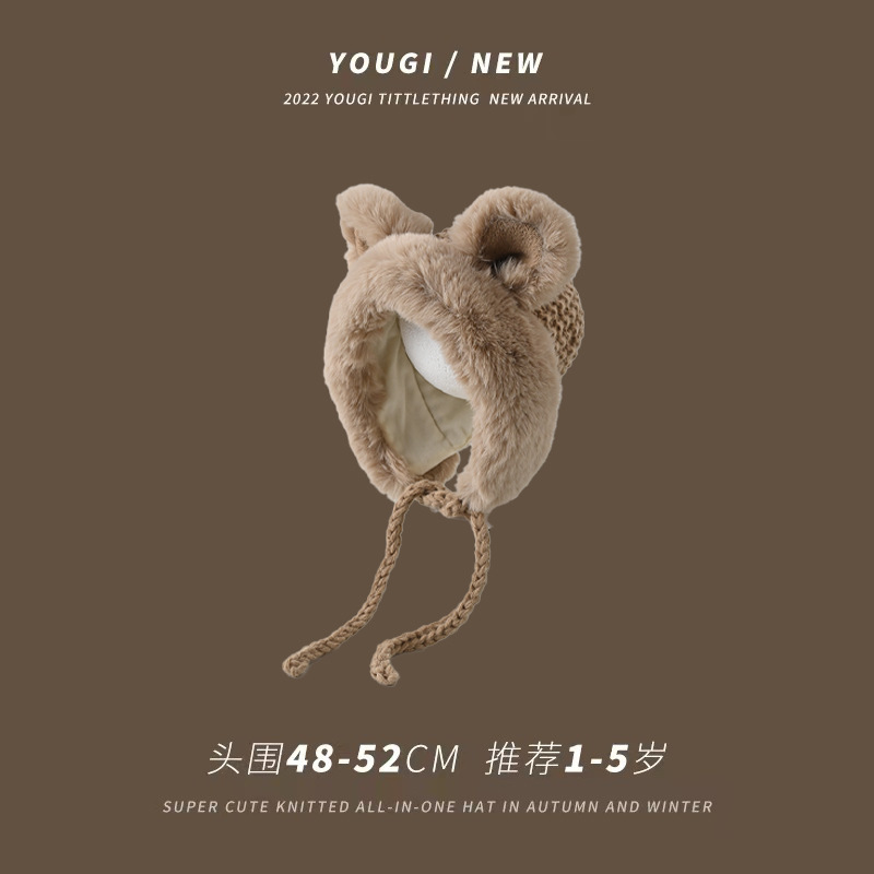 한국식 곰 어린이 모자 두꺼운 따뜻한 아기 니트 모자 가을과 겨울 귀여운 만화 소녀 귀 보호 모자