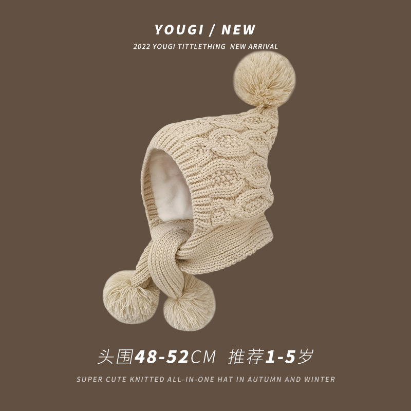 한국식 곰 어린이 모자 두꺼운 따뜻한 아기 니트 모자 가을과 겨울 귀여운 만화 소녀 귀 보호 모자스토어 가기