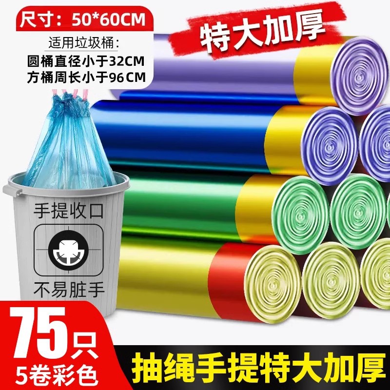 • 드로스트링 특대형 두꺼운 [5롤 75개] 혼합 색상 50*60cm ♢