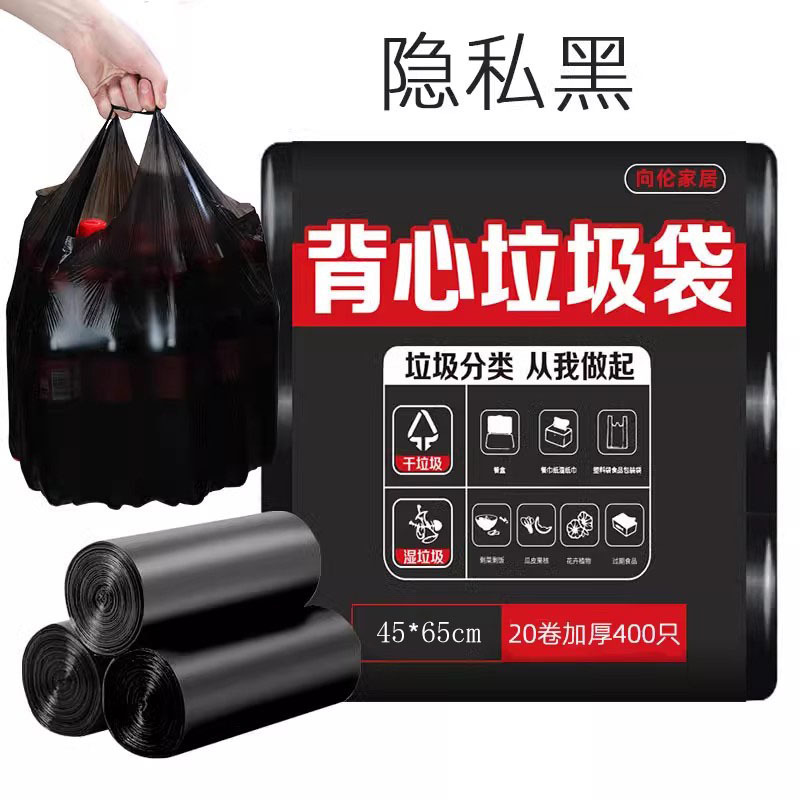 • 【조끼형 손잡이 10롤 200개 검정색】 두께 강화, 사이즈 확대 45*65♢