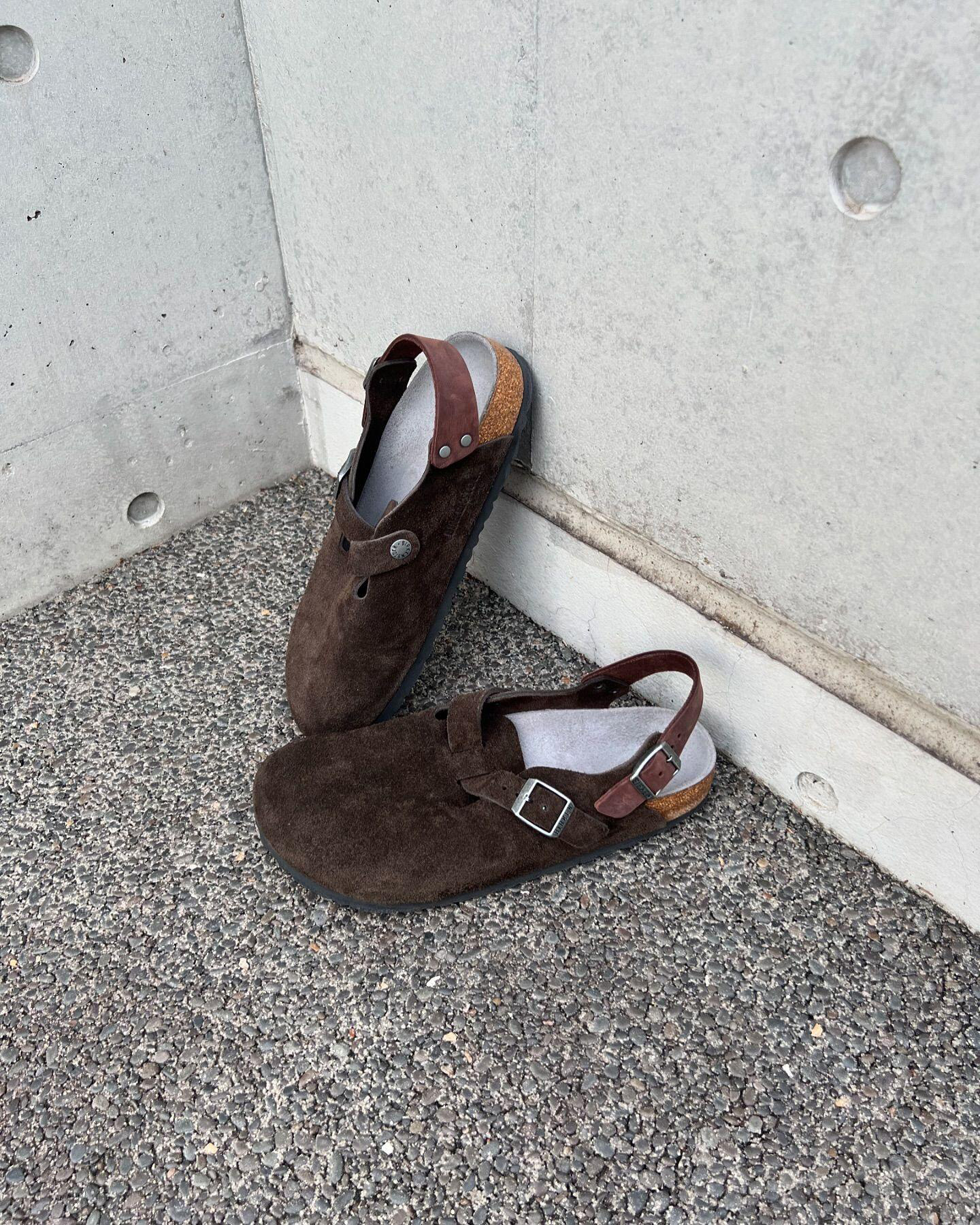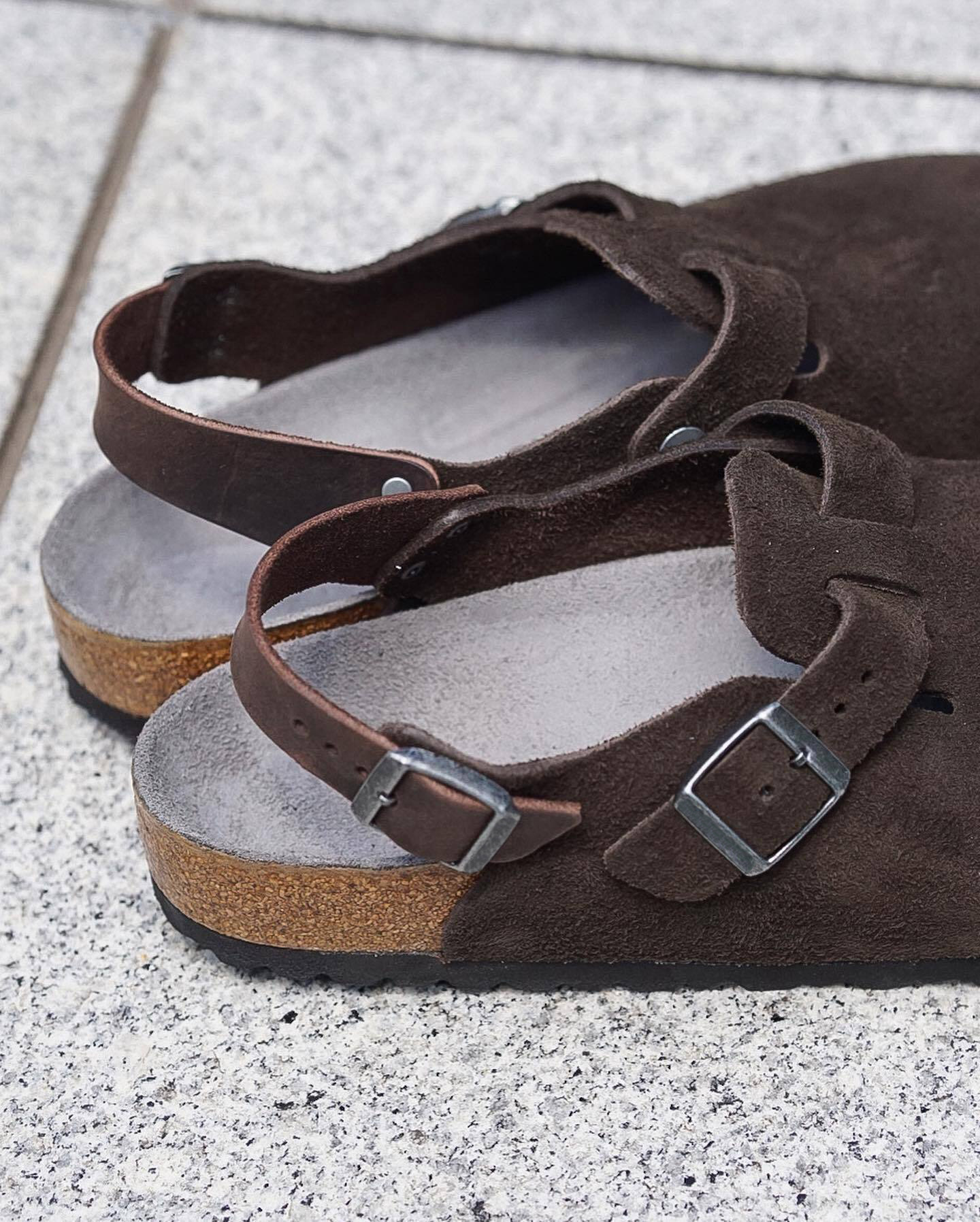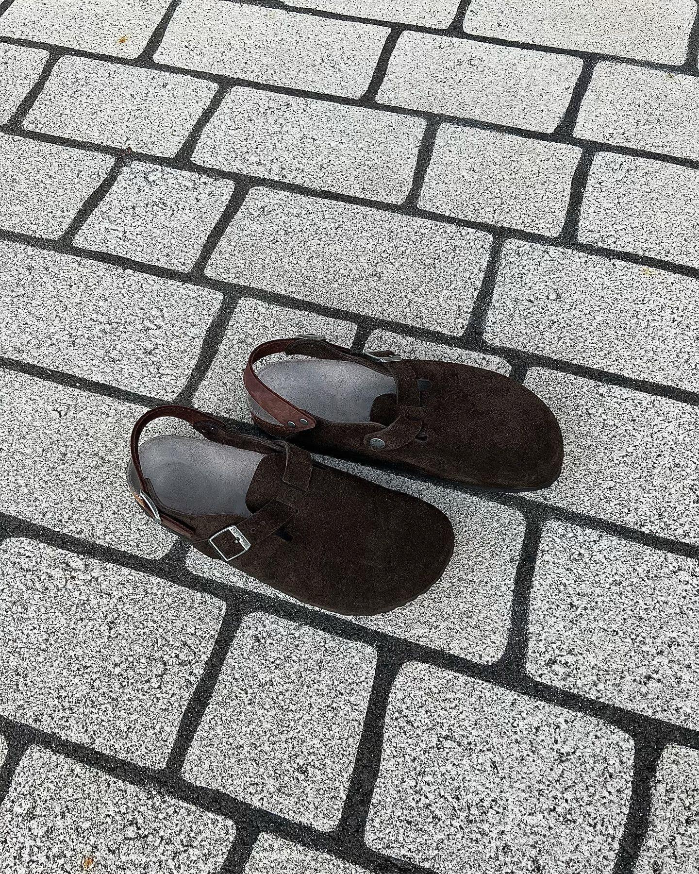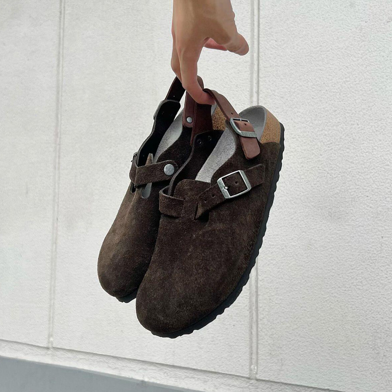 [재고] 버켄탈 신발이 달린 레트로 다크 브라운 발 뒤꿈치 여성용 양복 가죽 구멍 신발 두꺼운 단독 Birkenthal 반 슬리퍼