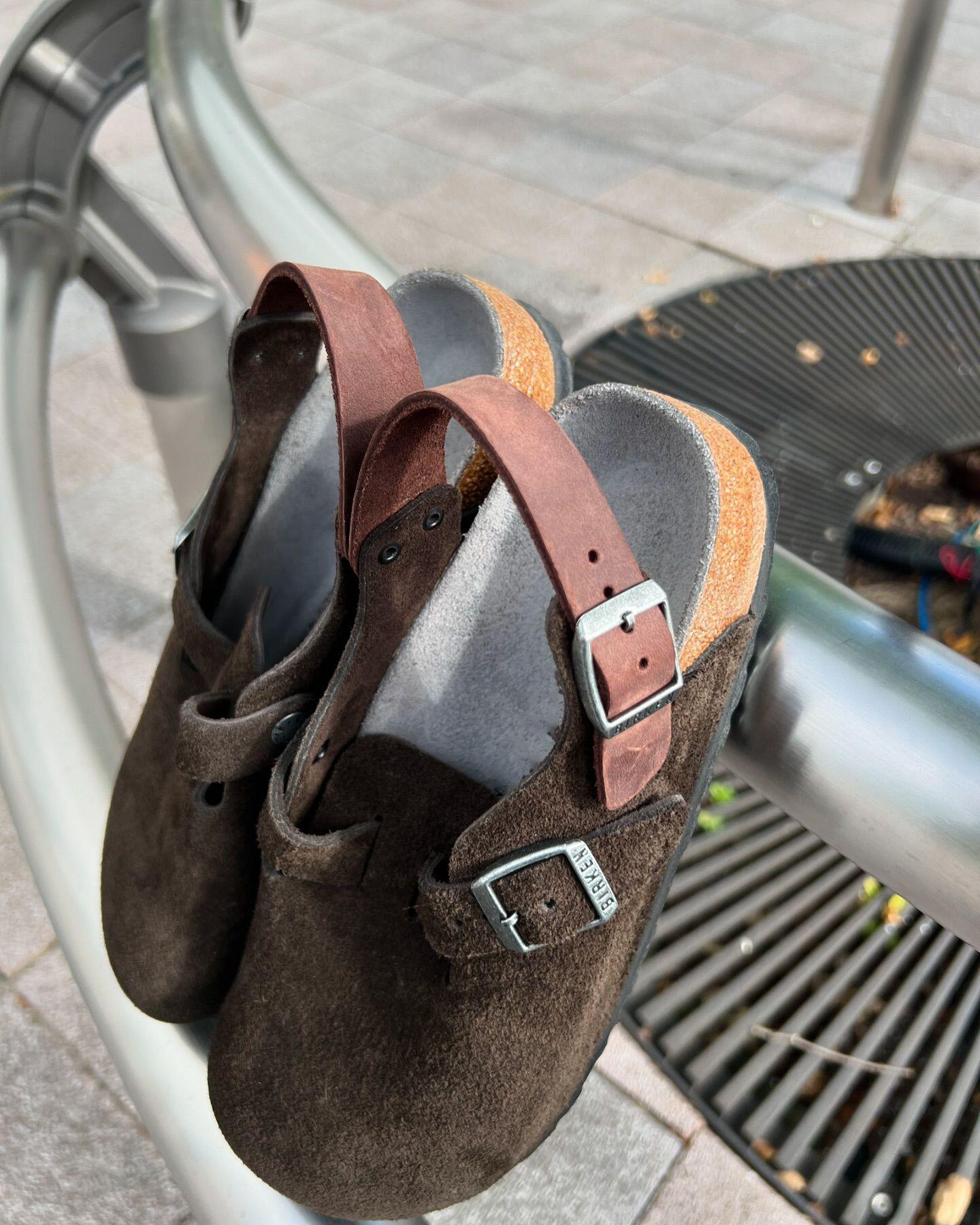 [재고] 버켄탈 신발이 달린 레트로 다크 브라운 발 뒤꿈치 여성용 양복 가죽 구멍 신발 두꺼운 단독 Birkenthal 반 슬리퍼스토어 가기