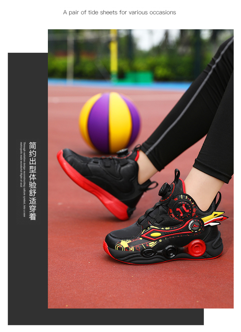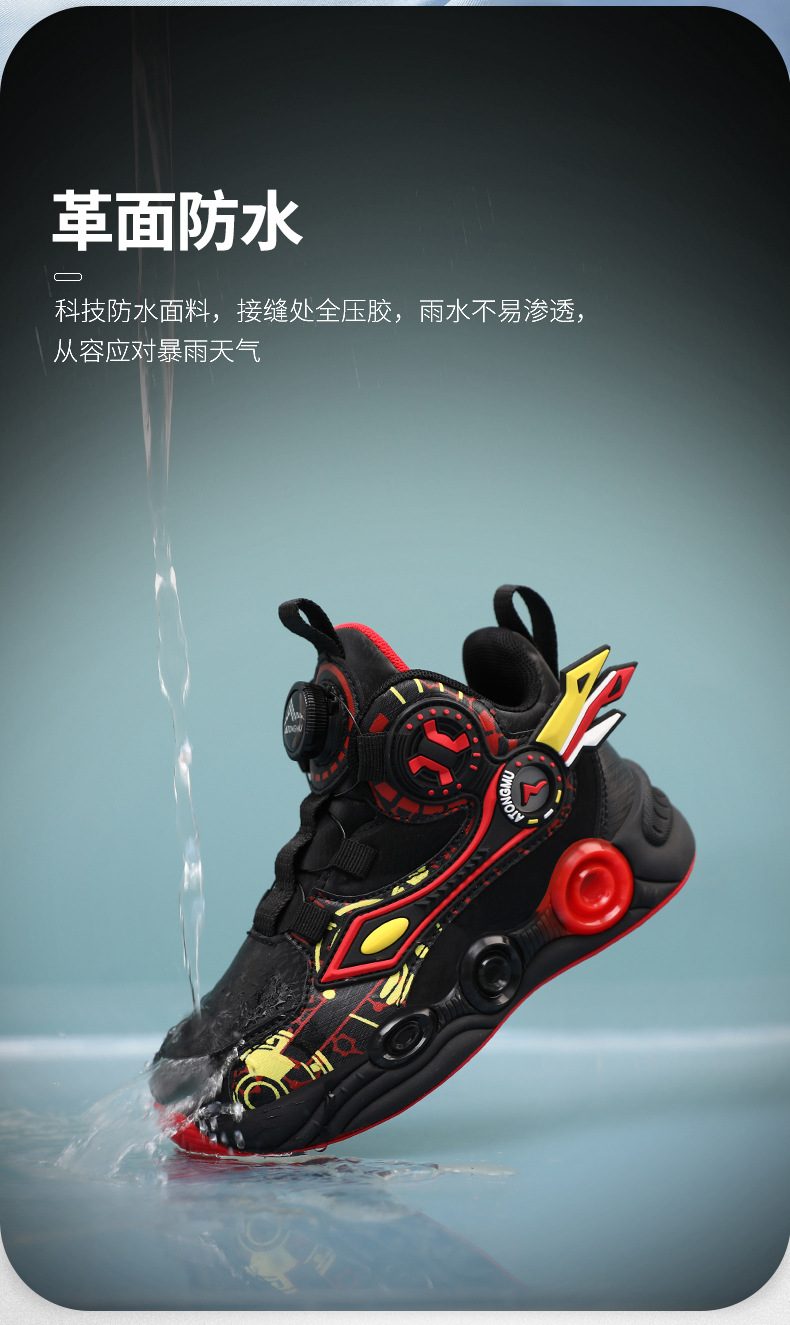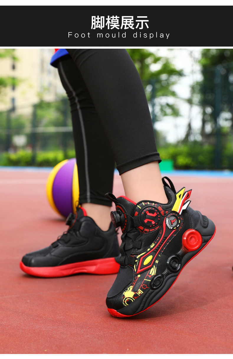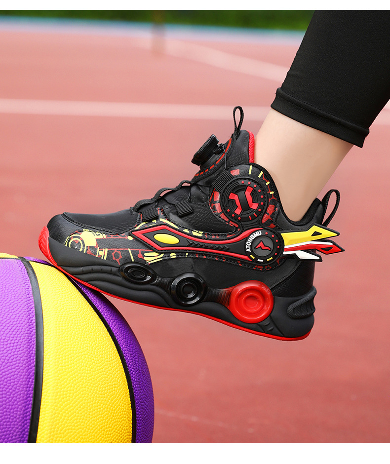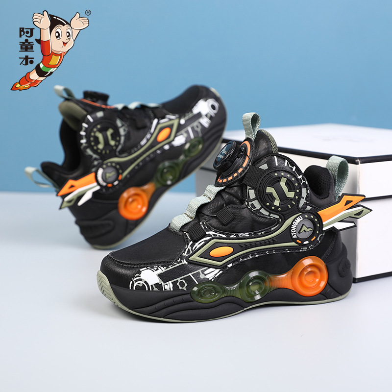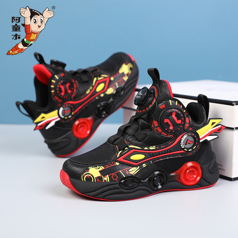 儿童篮球鞋皮面青少年新款纽扣运动鞋摩擦有声音阿童木耐磨跑步鞋