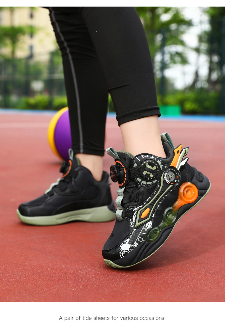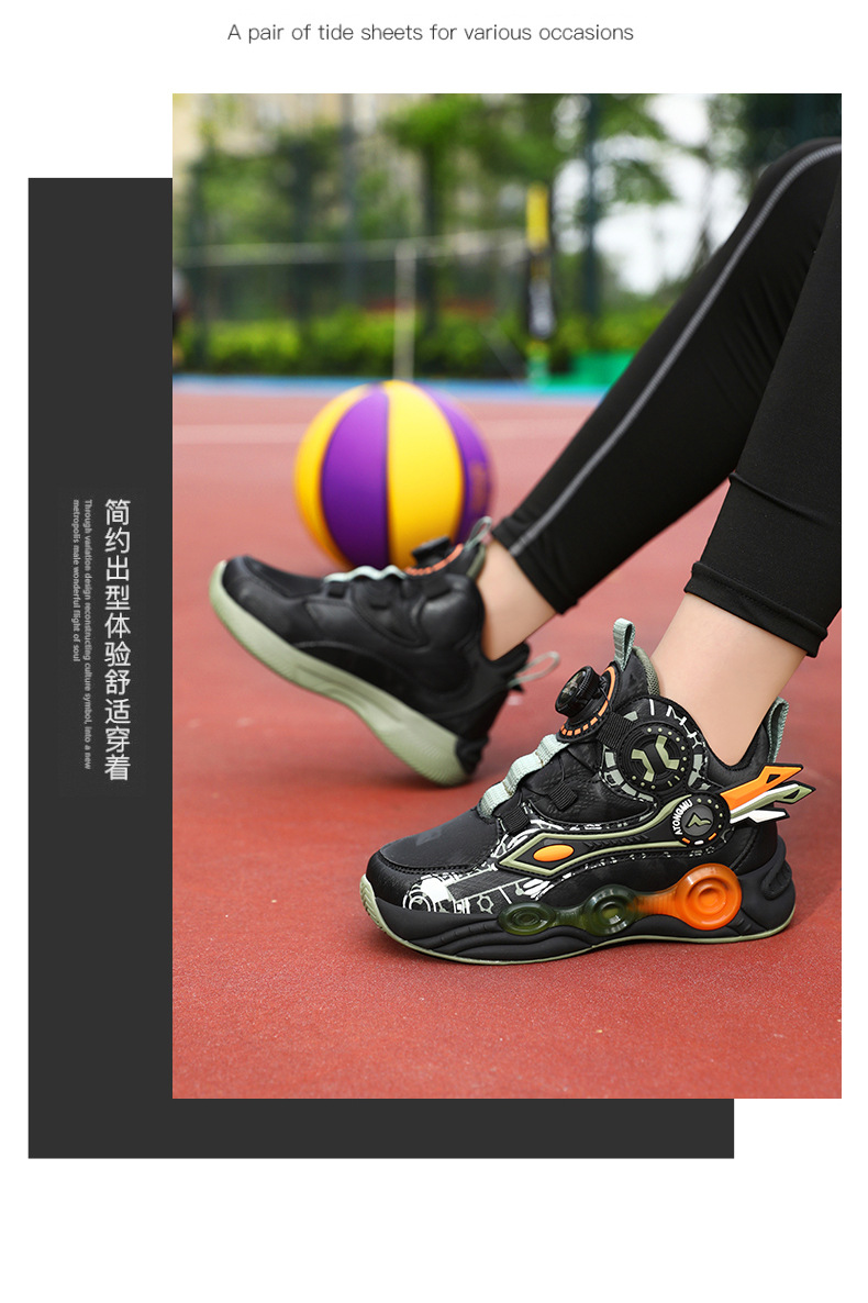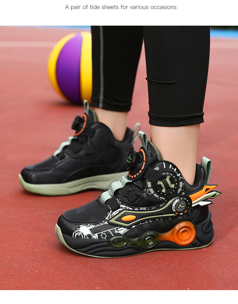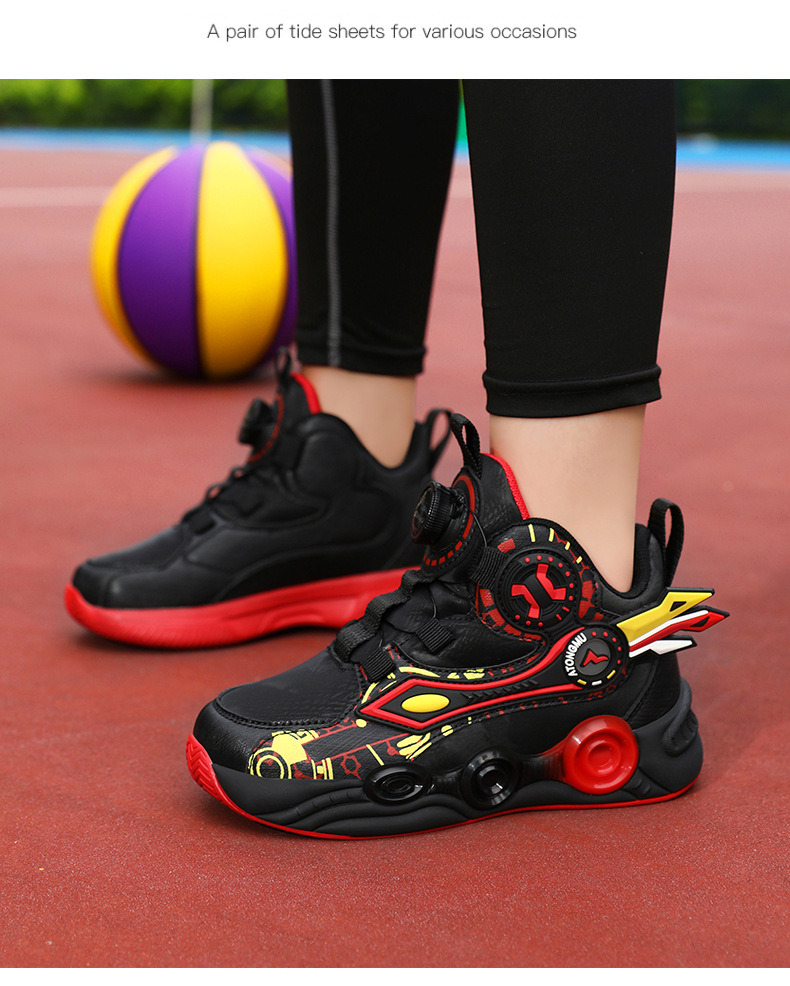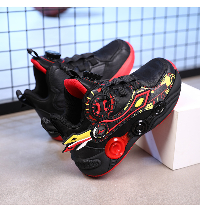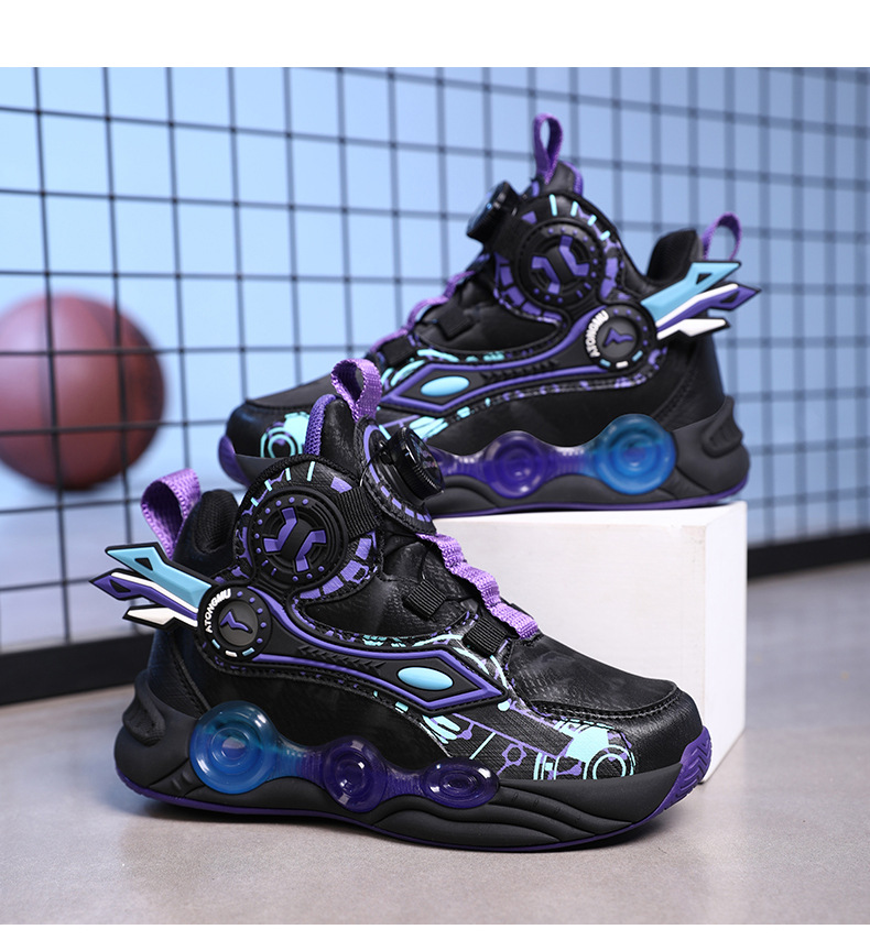 儿童篮球鞋皮面青少年新款纽扣运动鞋摩擦有声音阿童木耐磨跑步鞋