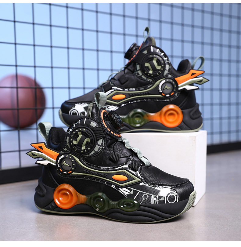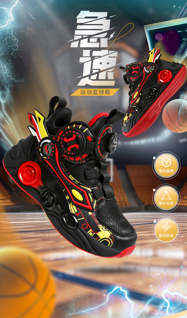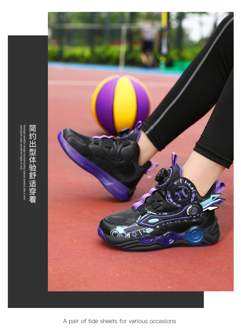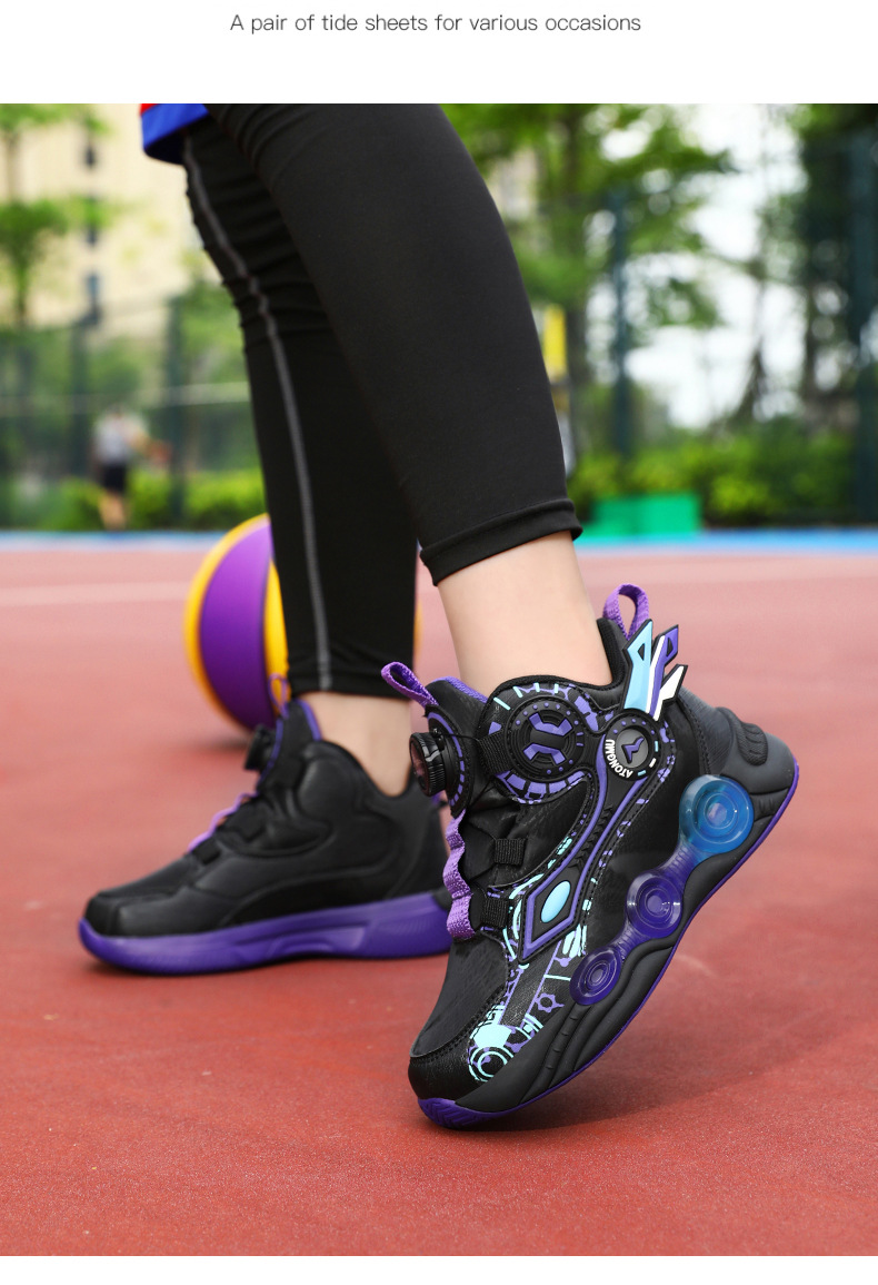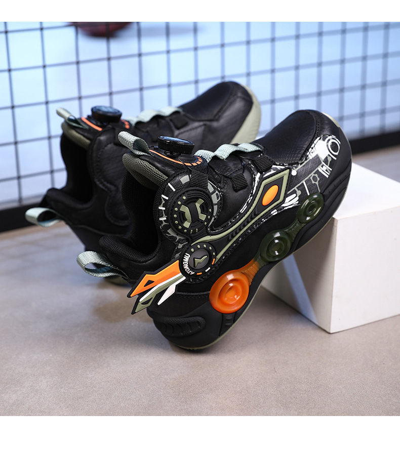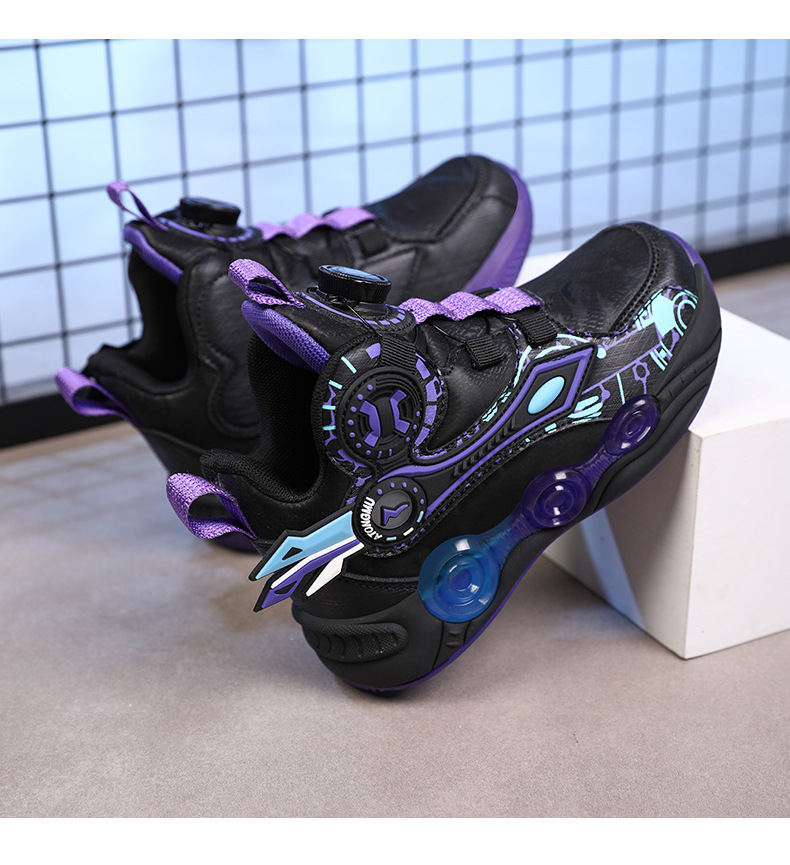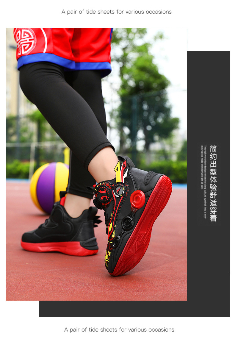 儿童篮球鞋皮面青少年新款纽扣运动鞋摩擦有声音阿童木耐磨跑步鞋