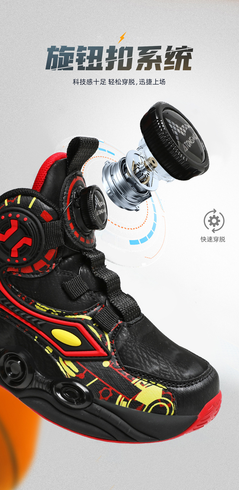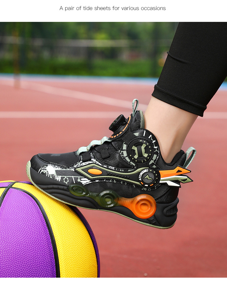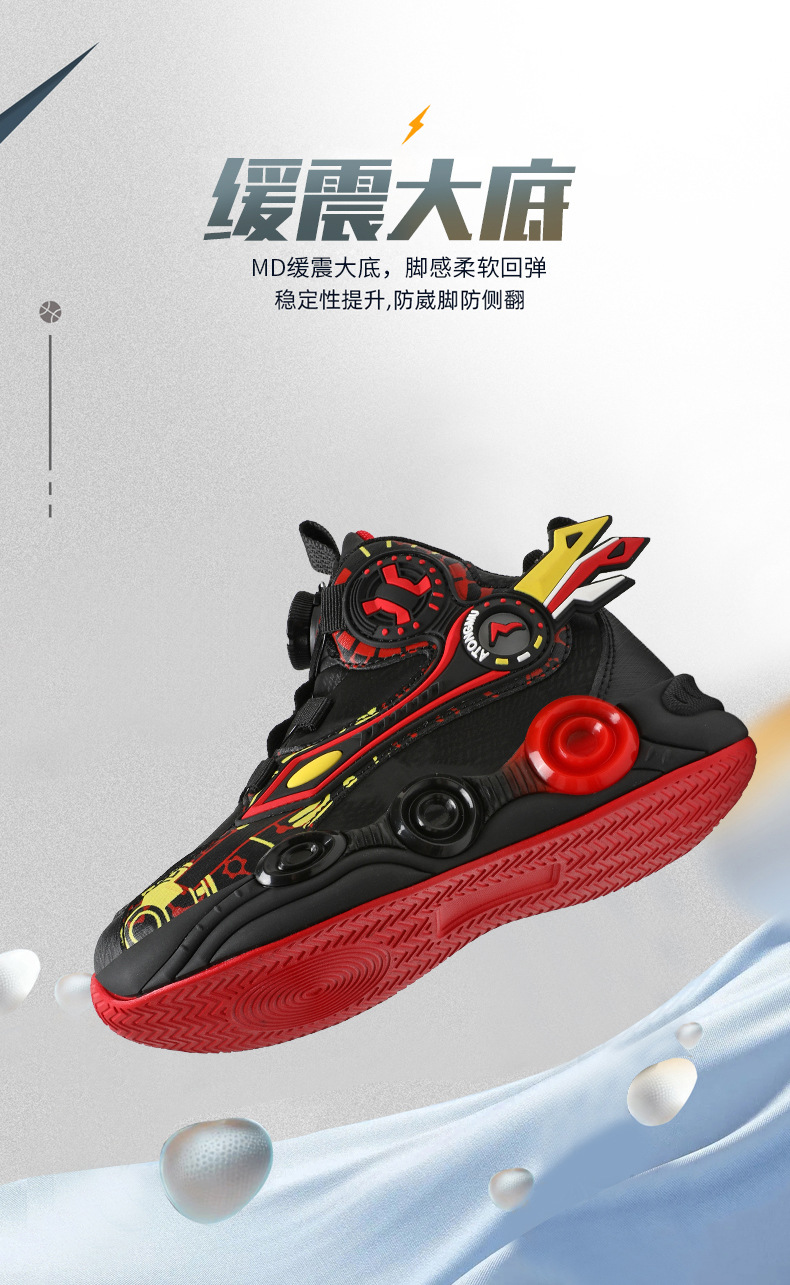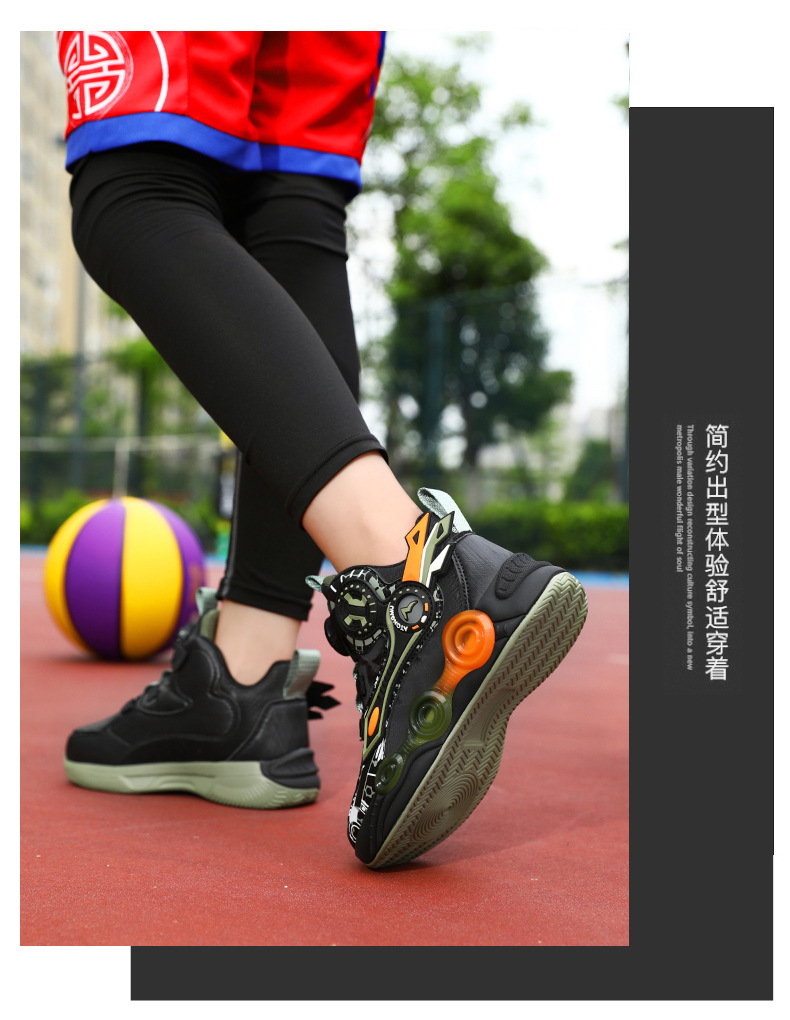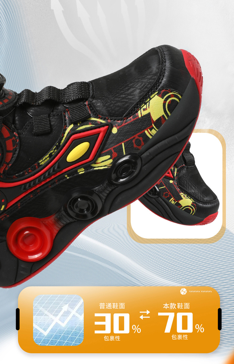 儿童篮球鞋皮面青少年新款纽扣运动鞋摩擦有声音阿童木耐磨跑步鞋