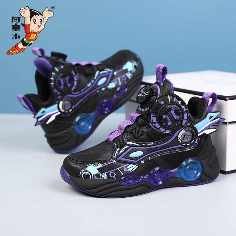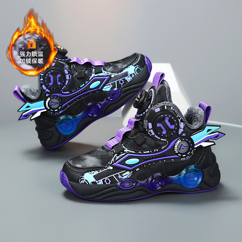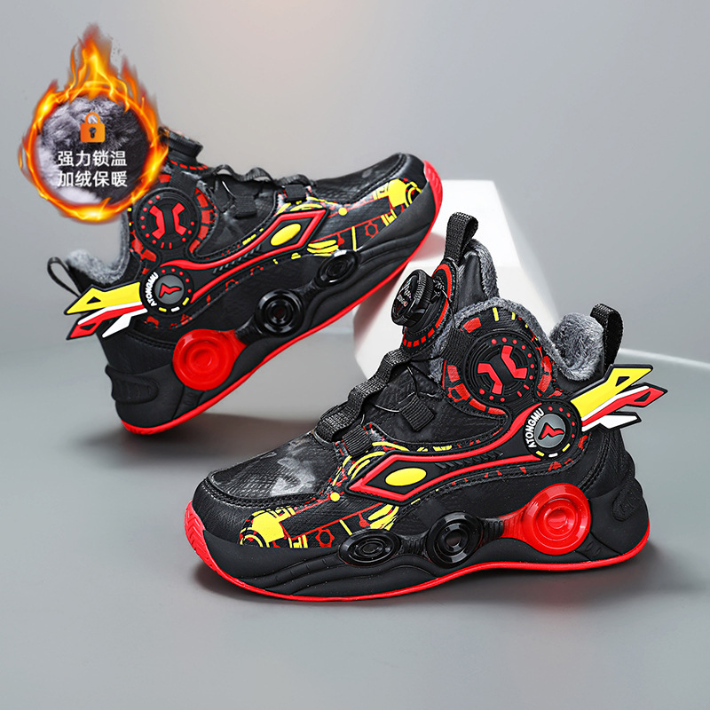어린이 농구 신발 가죽 십대 버튼 운동화 마찰 사운드 아스트로 보이 기모 코튼 슈즈 런닝 슈즈