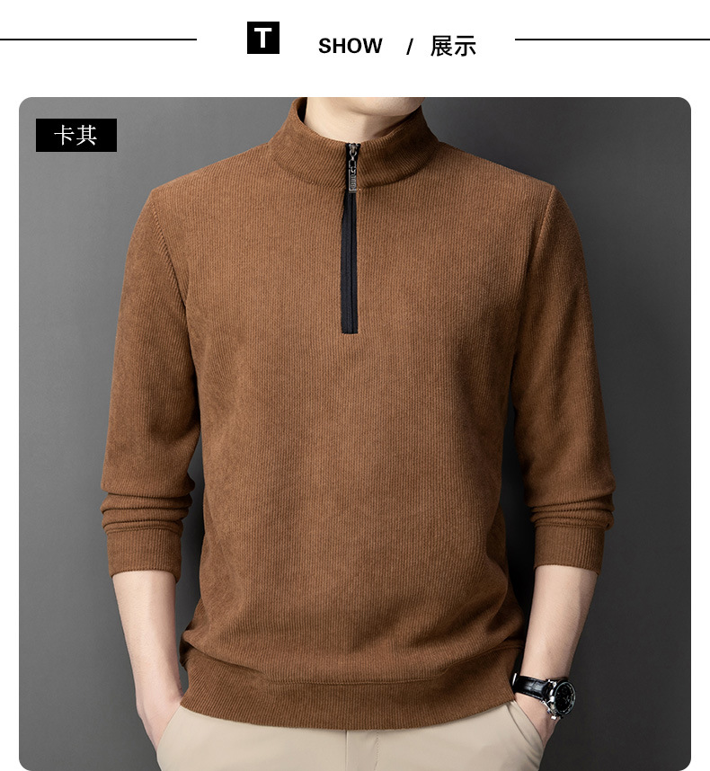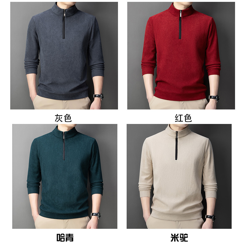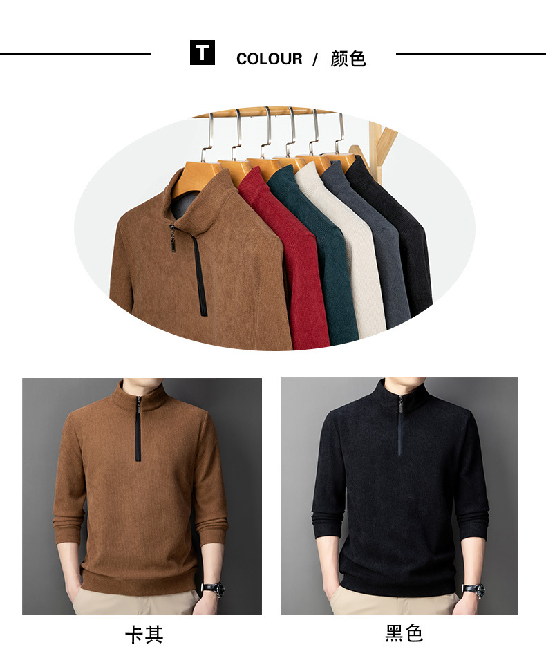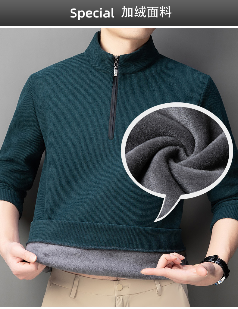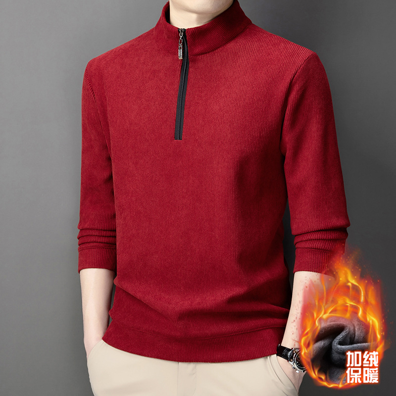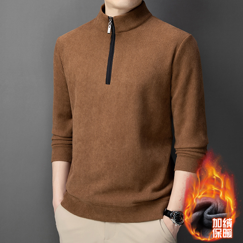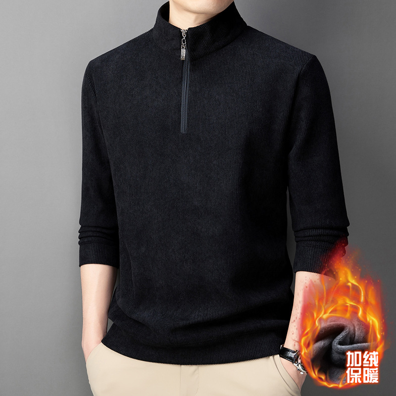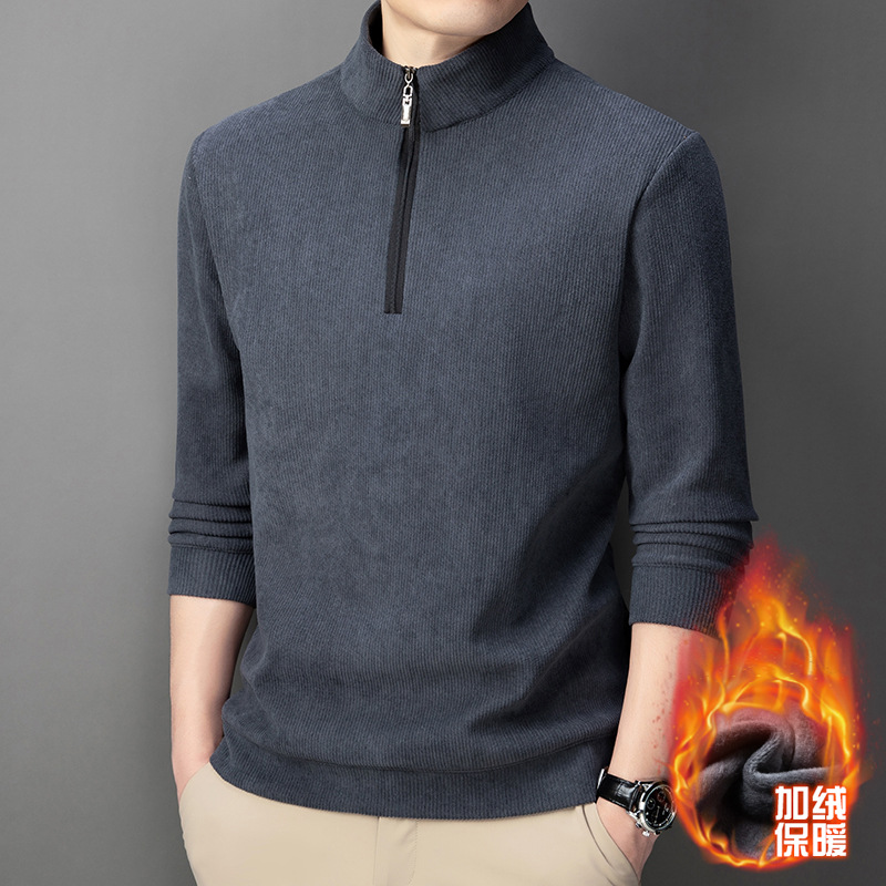 기모 한국 남성 스웨트 셔츠 겨울 젊고 중년 유행 캐주얼 칼라 지퍼 솔리드 컬러 남성용 따뜻한 긴팔 티셔츠