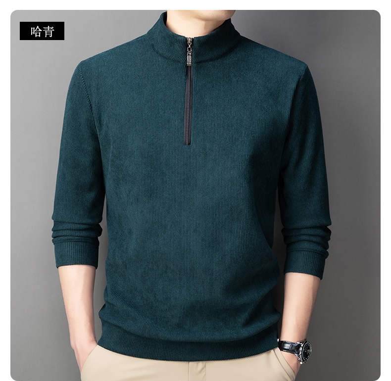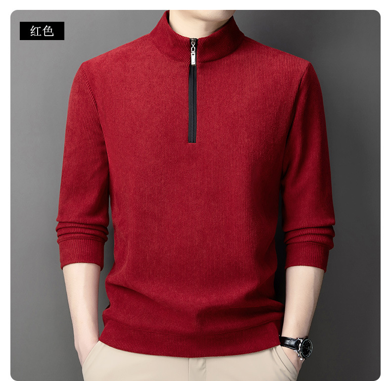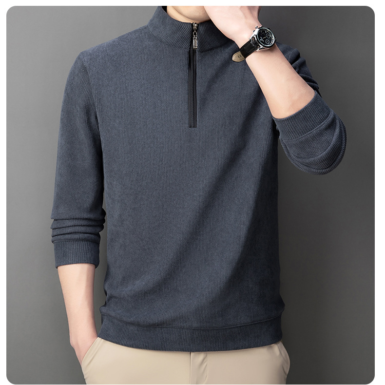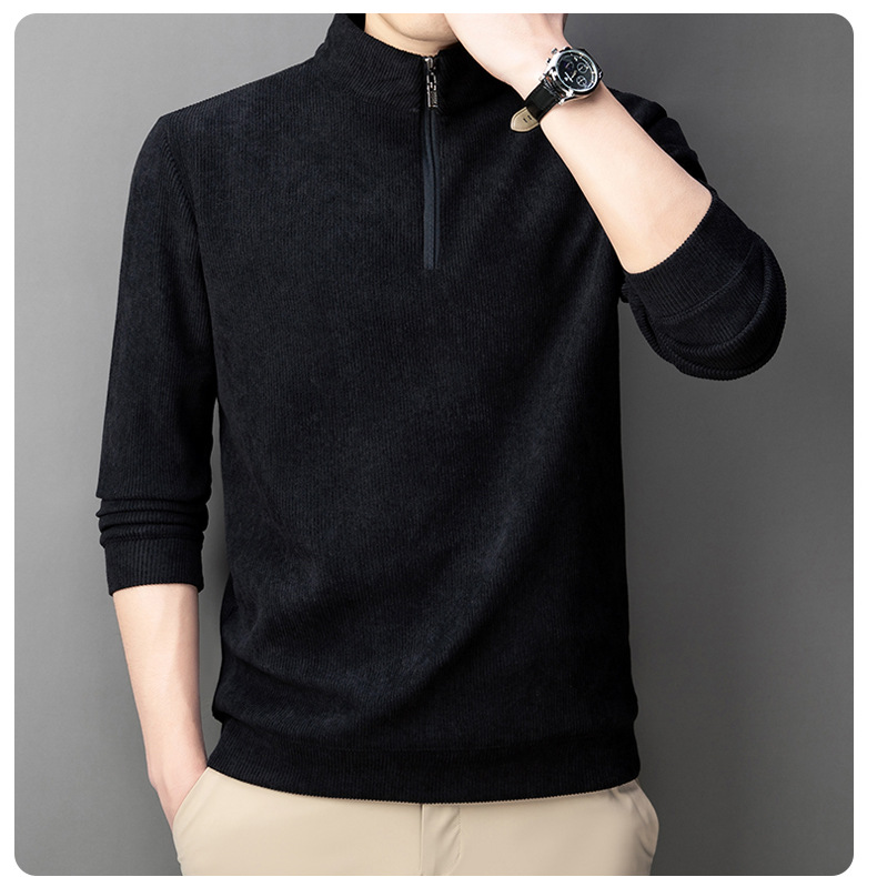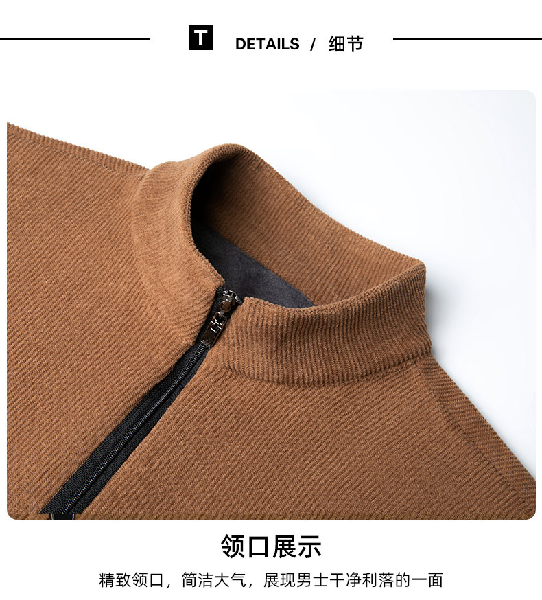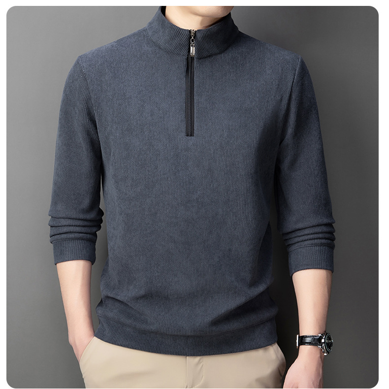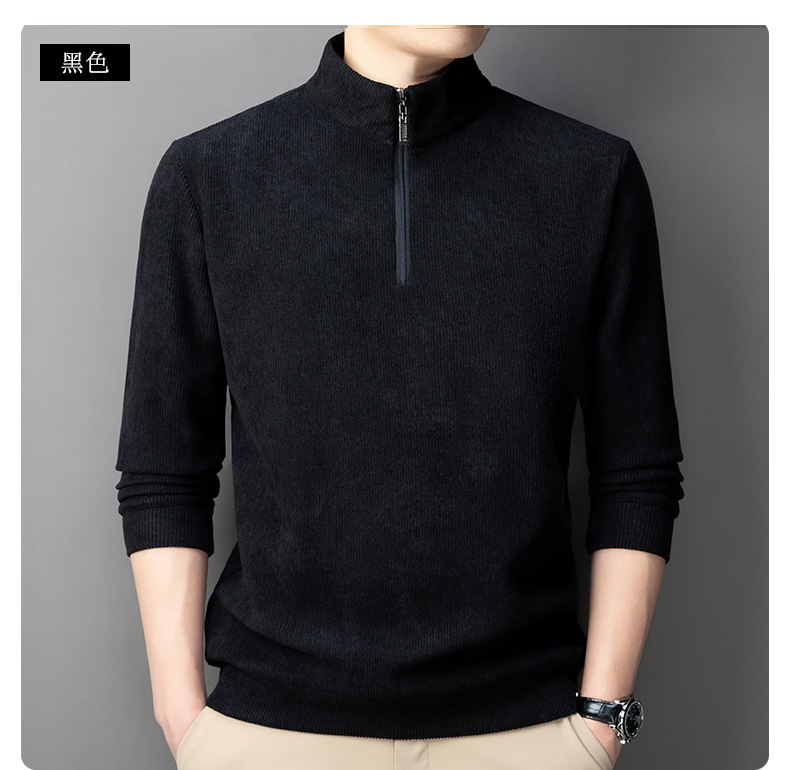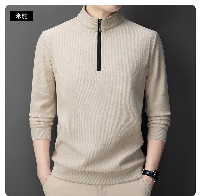 기모 한국 남성 스웨트 셔츠 겨울 젊고 중년 유행 캐주얼 칼라 지퍼 솔리드 컬러 남성용 따뜻한 긴팔 티셔츠