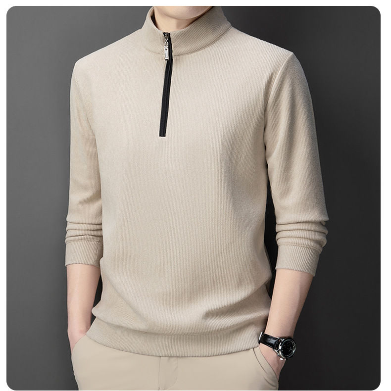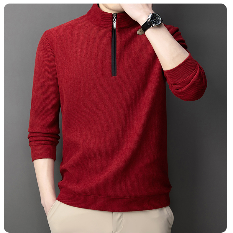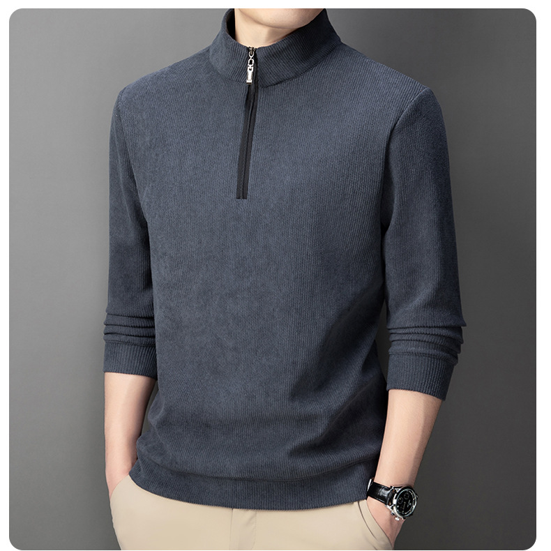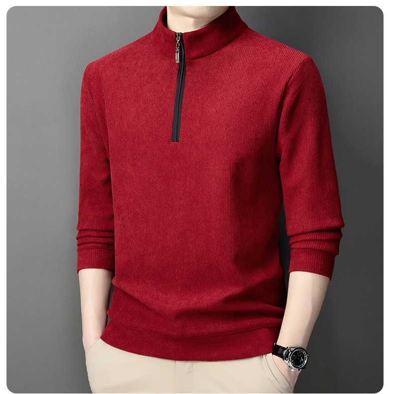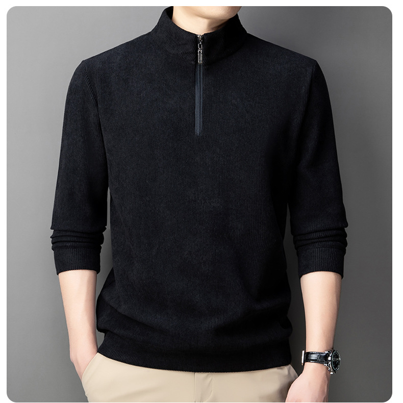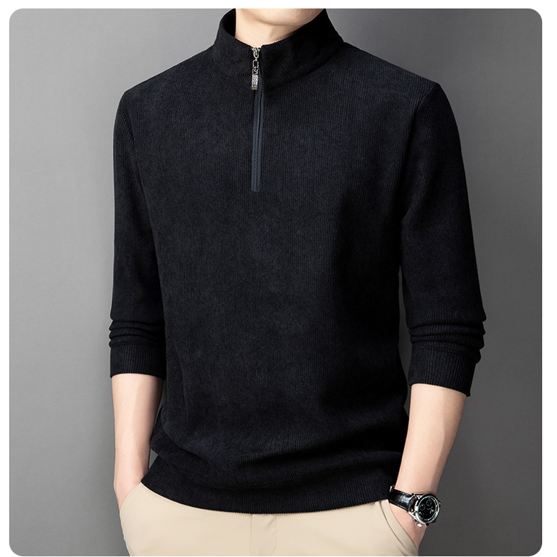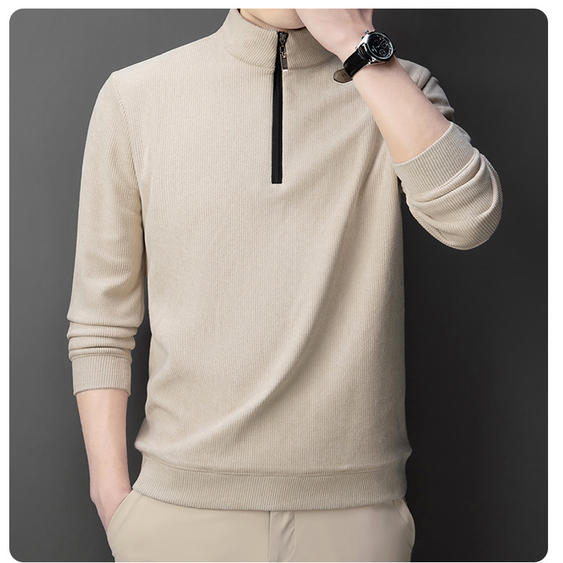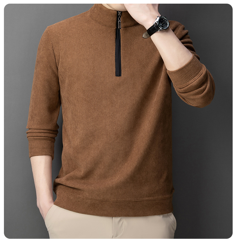 기모 한국 남성 스웨트 셔츠 겨울 젊고 중년 유행 캐주얼 칼라 지퍼 솔리드 컬러 남성용 따뜻한 긴팔 티셔츠