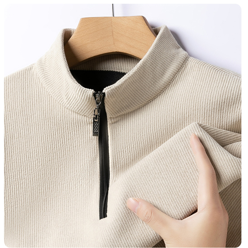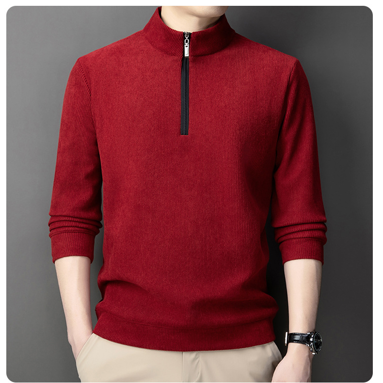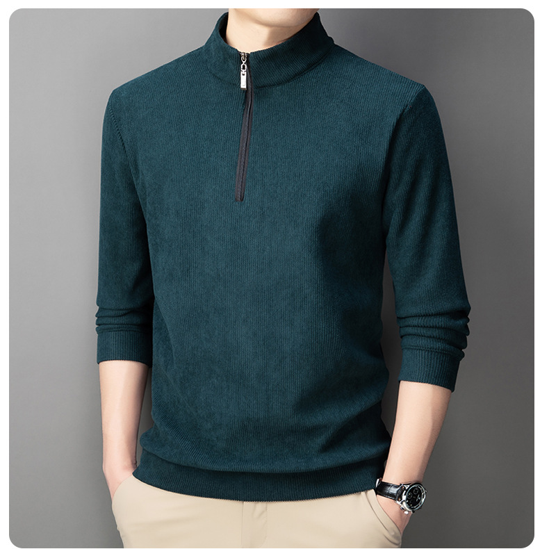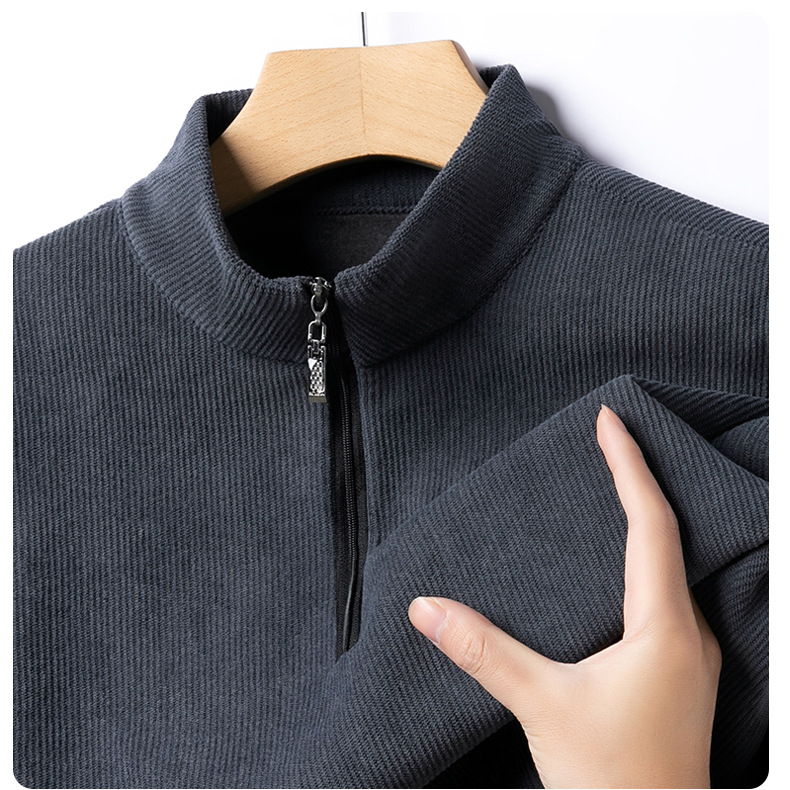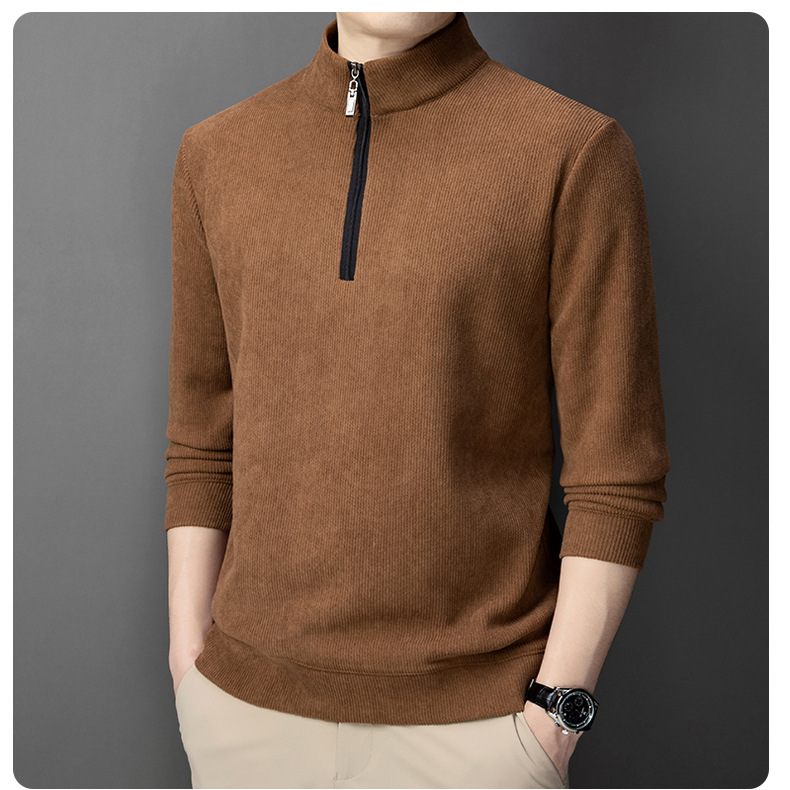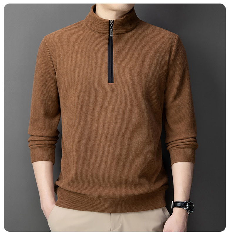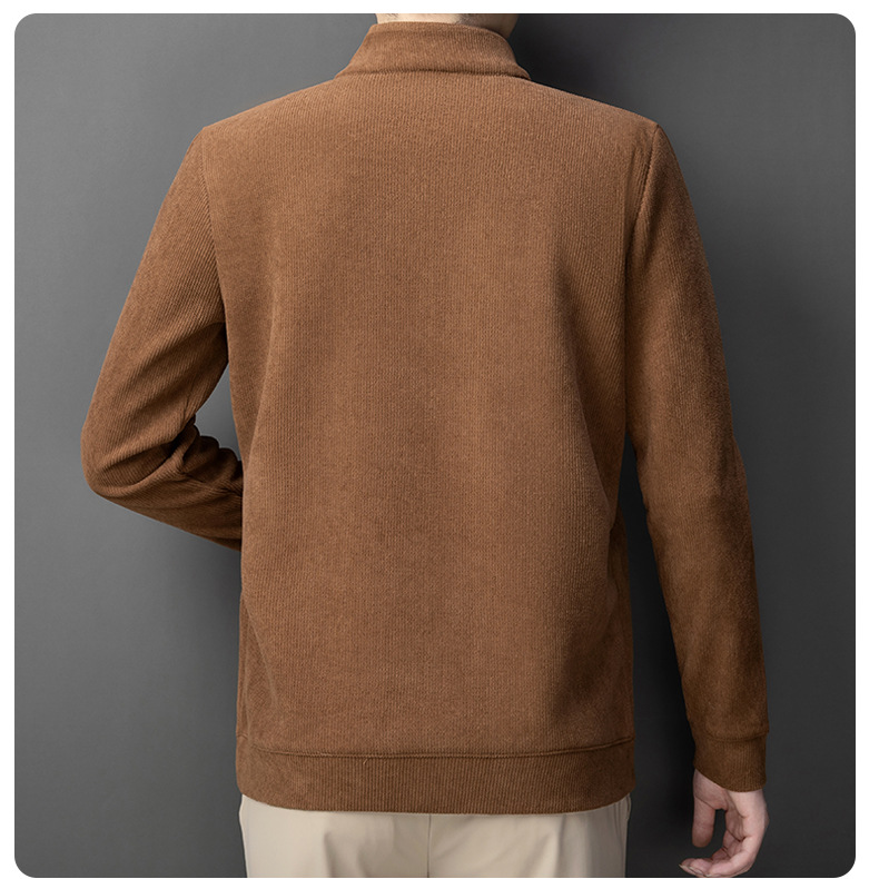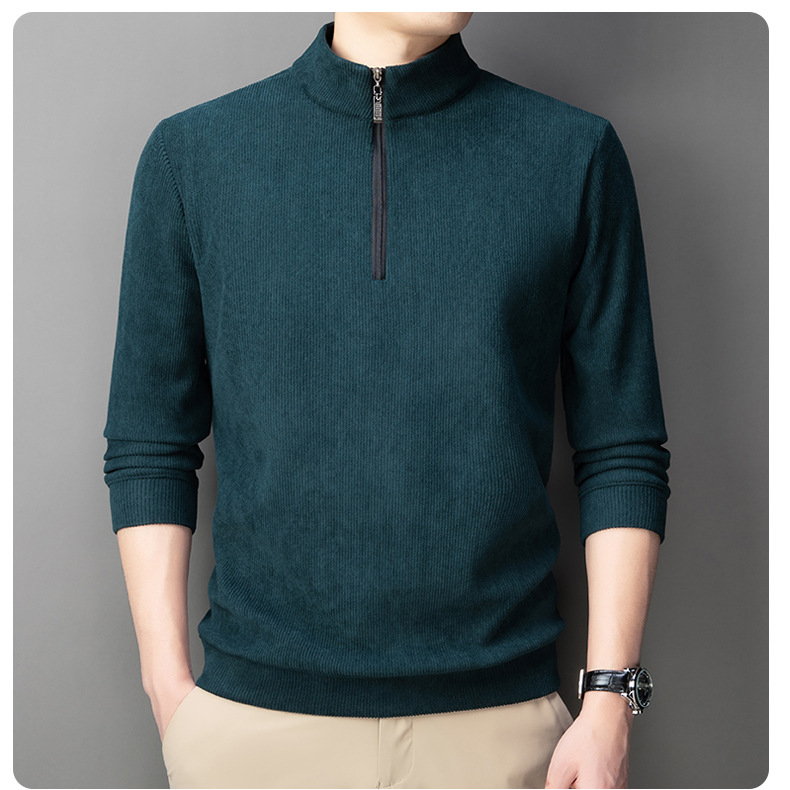 기모 한국 남성 스웨트 셔츠 겨울 젊고 중년 유행 캐주얼 칼라 지퍼 솔리드 컬러 남성용 따뜻한 긴팔 티셔츠